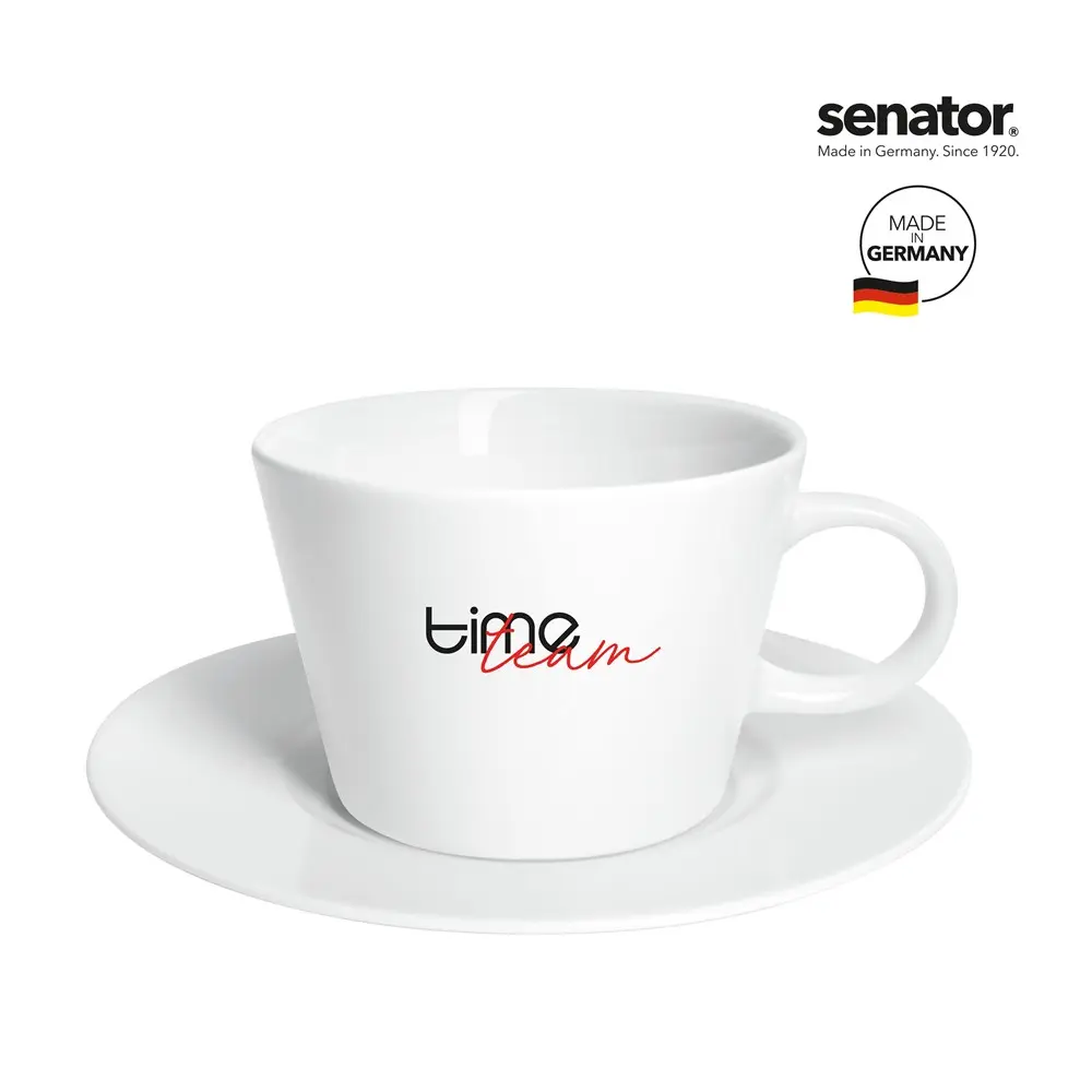 De senator® Fancy Cafe Set is een elegante porseleinen mok met bijpassende schotel, perfect voor uw bedrijfsrelaties. Met een inhoud van 200 ml biedt deze set een stijlvolle manier om uw merk te promoten tijdens events of als blijvend relatiegeschenk. Door de hoogwaardige afwerking voelt de mok luxueus aan, ideaal voor koffie- of theemomenten in professionele settings.