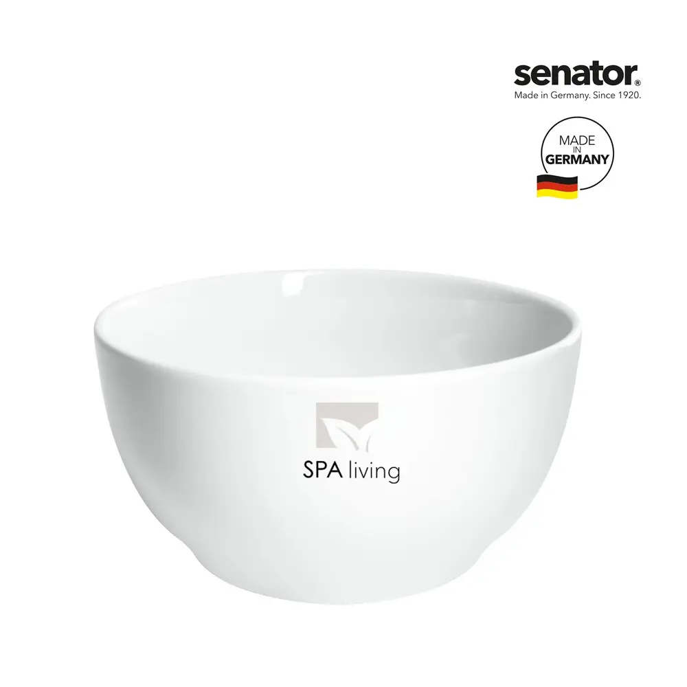 De senator® Fancy muesli schaal is een elegante porseleinen kom, perfect als gepersonaliseerd relatiegeschenk voor uw bedrijf. Met een hoogte van 76 mm, diameter van 141 mm en inhoud van 0,65 l biedt deze schaal een ruime capaciteit voor muesli, yoghurt of salades, ideaal voor professionele events of als duurzame promotie bij uw klanten.
