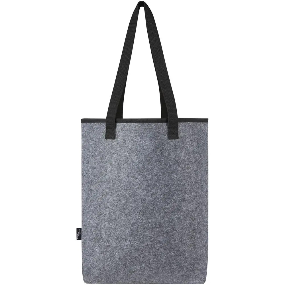 Ontdek de Felta vilten koelhoudende draagtas van 12 liter, ideaal als gepersonaliseerd relatiegeschenk voor uw marketingcampagnes of events. Gemaakt van hoogwaardig, zacht en duurzaam GRS-gecertificeerd gerecycled polyester in vilten stijl, biedt deze tas optimale isolatie met een bekleed hoofdvak van voedselveilige aluminium en klittenbandsluiting. Zo houdt u dranken, versnaperingen en diepvriesproducten langer koel, beschermd tegen externe invloeden.
