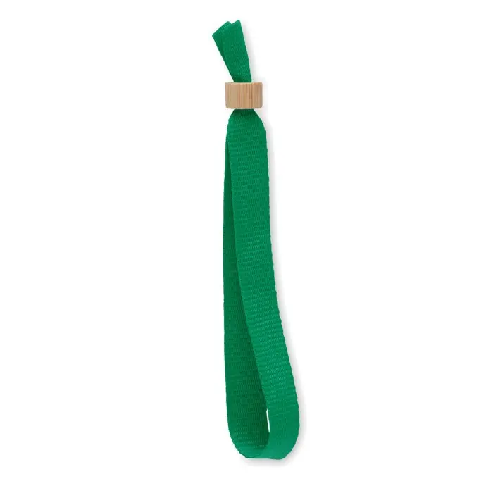 Dankzij het robuuste polyester materiaal is de polsband slijtvast en comfortabel, terwijl de bamboe sluiting zorgt voor een natuurlijke, unieke touch. Perfect voor bedrijven en eventorganisatoren om grote hoeveelheden uit te delen als relatiegeschenk. Profiteer van de ecologische voordelen van RPET en bamboe om uw duurzame imago te benadrukken en uw marketingstrategie te optimaliseren.