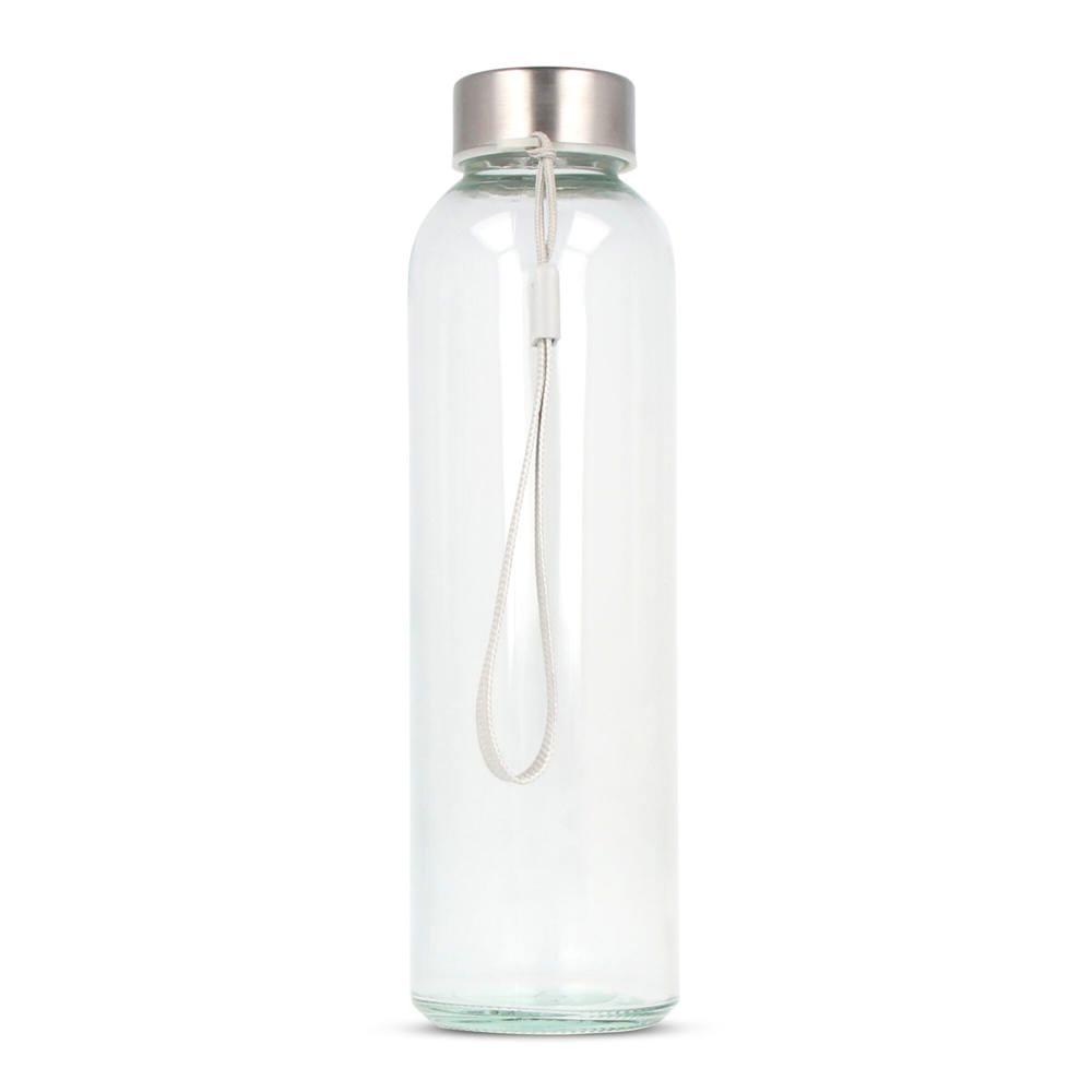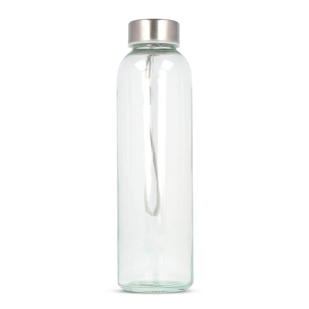 Je ontvangt een stijlvolle glazen waterfles van 500ml met een handig bandje aan de dop, ideaal om eenvoudig vast te houden tijdens events of onderweg. Deze fles is geschikt voor koude, koolzuurhoudende en niet-koolzuurhoudende dranken, zodat je relaties altijd hun favoriete drankje meenemen.