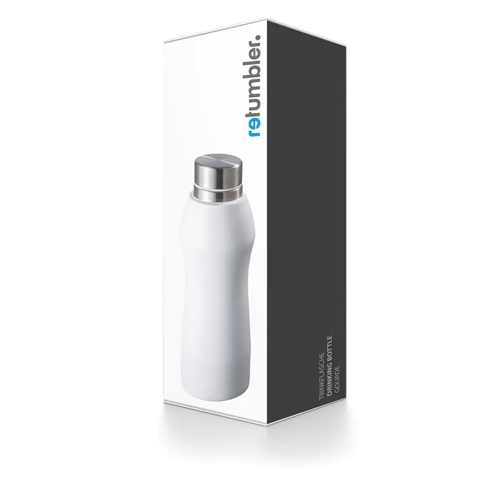 De RETUMBLER-GIBRALTAR roestvrijstalen fles is een stijlvol relatiegeschenk dat uw merk versterkt tijdens events of als promotie. Met 860 ml inhoud en lekvrije afdichting is deze fles ideaal voor onderweg, geschikt voor koolzuurhoudende dranken en vaatwasserbestendig. Gemaakt van gerecycled roestvrij staal, BPA-vrij materiaal met silicone en kunststof accenten, voldoet hij aan duurzaamheidsnormen en biedt hij een premium uitstraling voor persoonlijke logobedrukking.