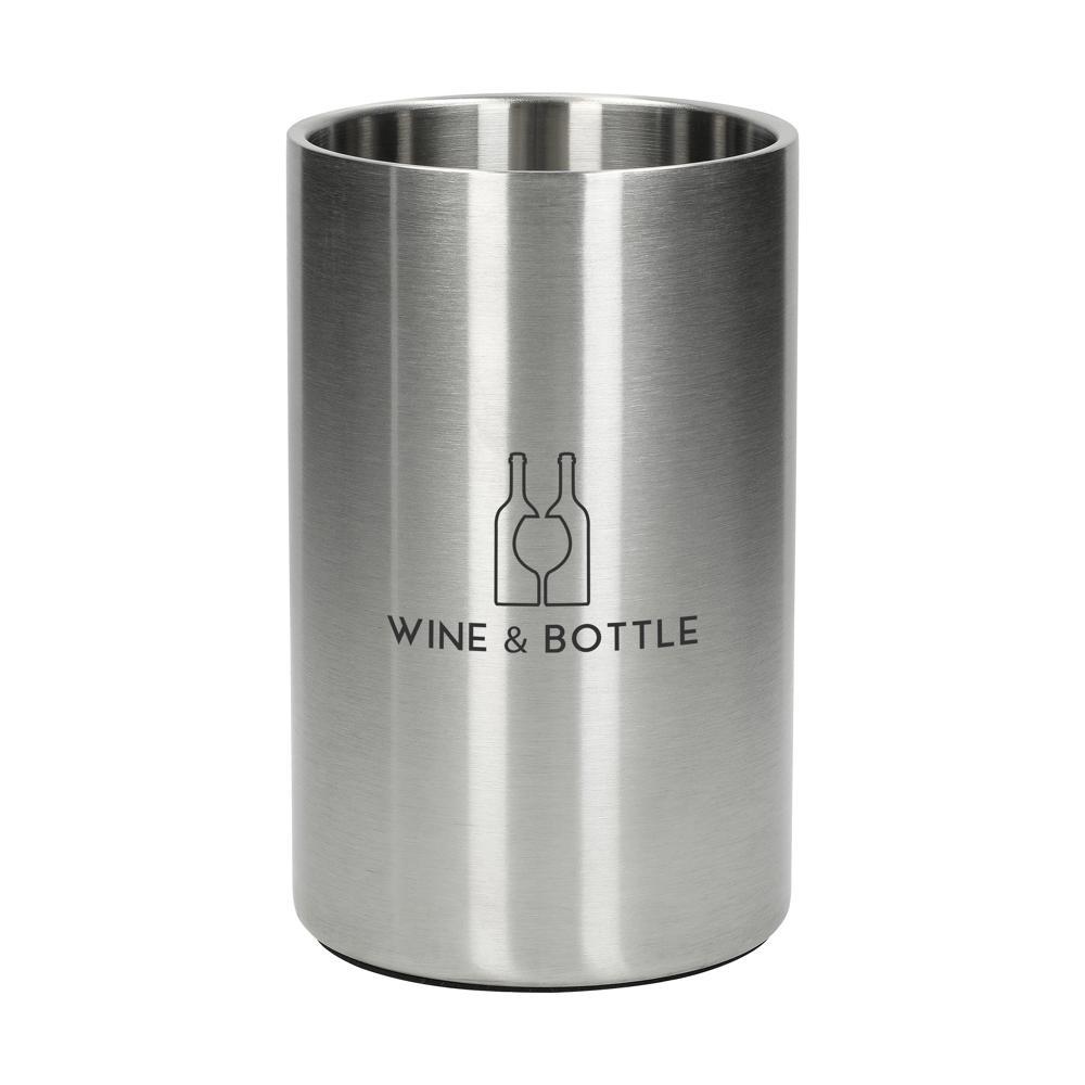 Hou je drankjes perfect koel tijdens events of meetings met deze stijlvolle flessenkoeler. Gemaakt van gerecycled roestvrij staal, combineert hij duurzaamheid met een elegant, tijdloos design dat je merk versterkt. Je past hem eenvoudig aan met je logo voor een uniek relatiegeschenk dat indruk maakt op klanten en relaties.