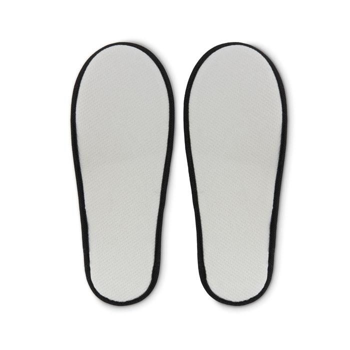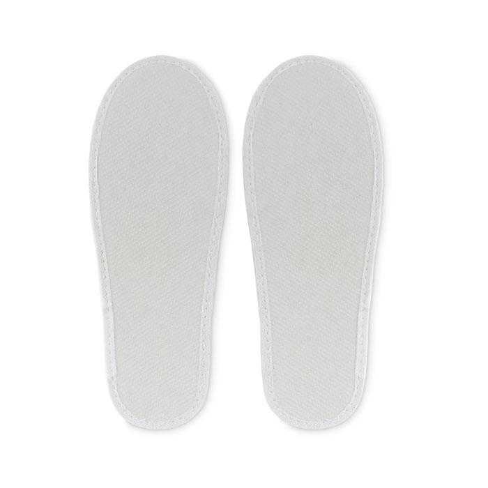 Twee polyester hotelslippers in een non woven pouch. Maat EUR 43 - 44.
