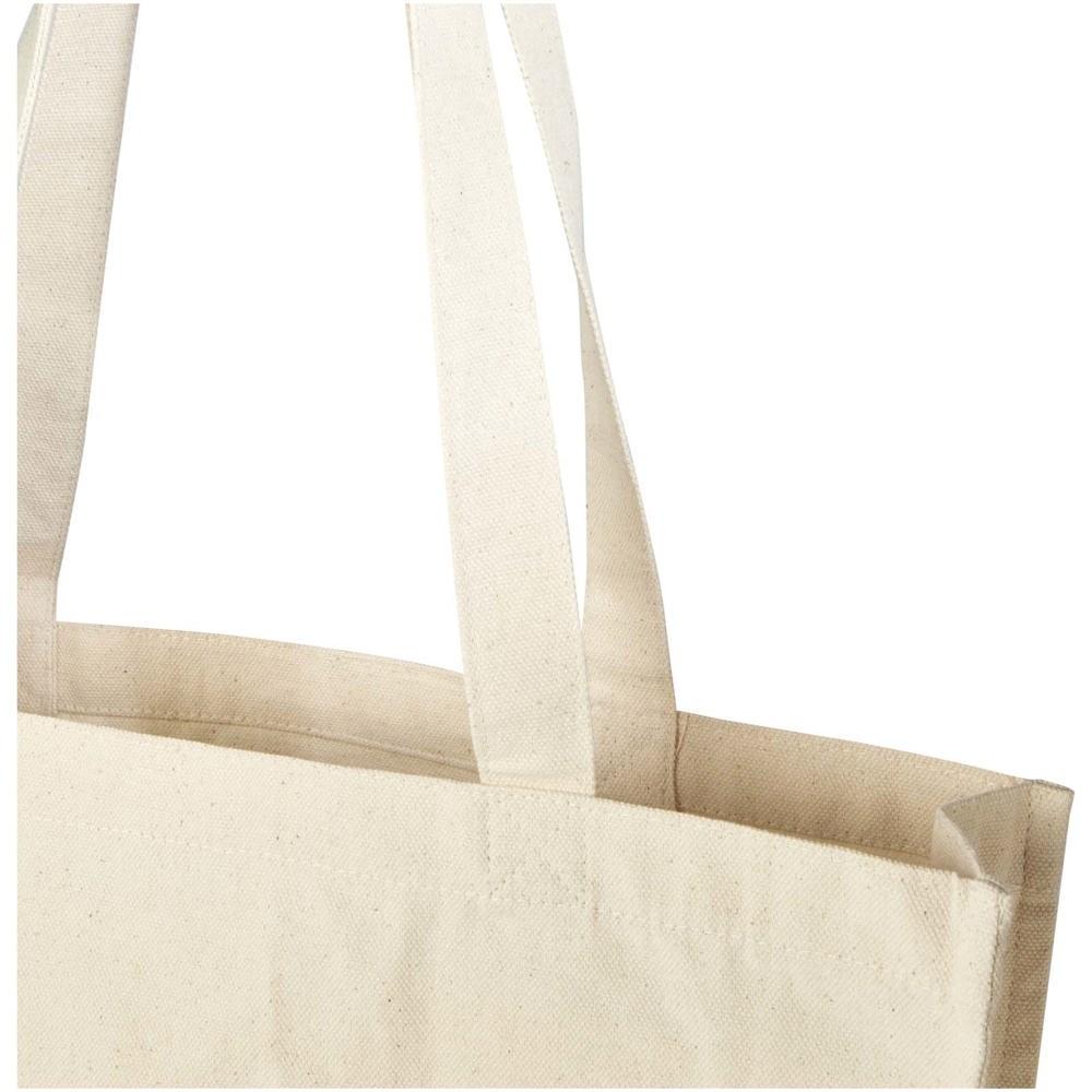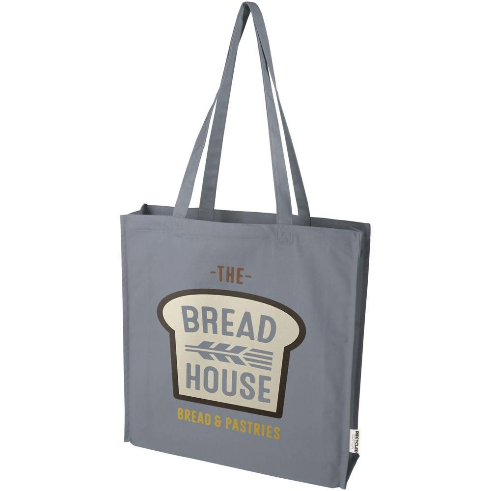 Gemaakt van 100% GRS-gecertificeerd gerecycled katoen van 270 g/m², kies je met deze Florida dragtas voor een verantwoorde en duurzame promotie. Met een ruime inhoud van 14 liter en comfortabele handgrepen van 30 cm neem je moeiteloos boodschappen, boeken of dagelijks spul mee.