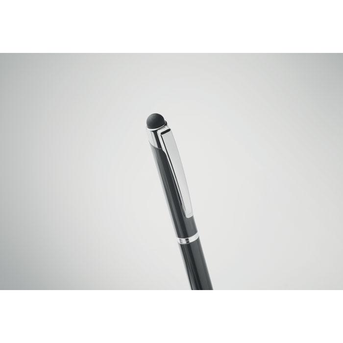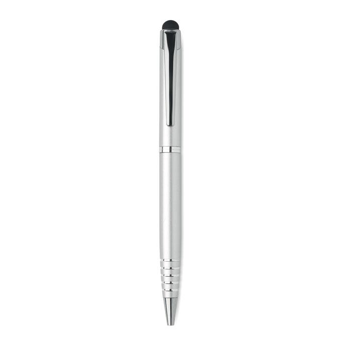 Balpen van gerecycled aluminium met stylus. Blauwe inkt.