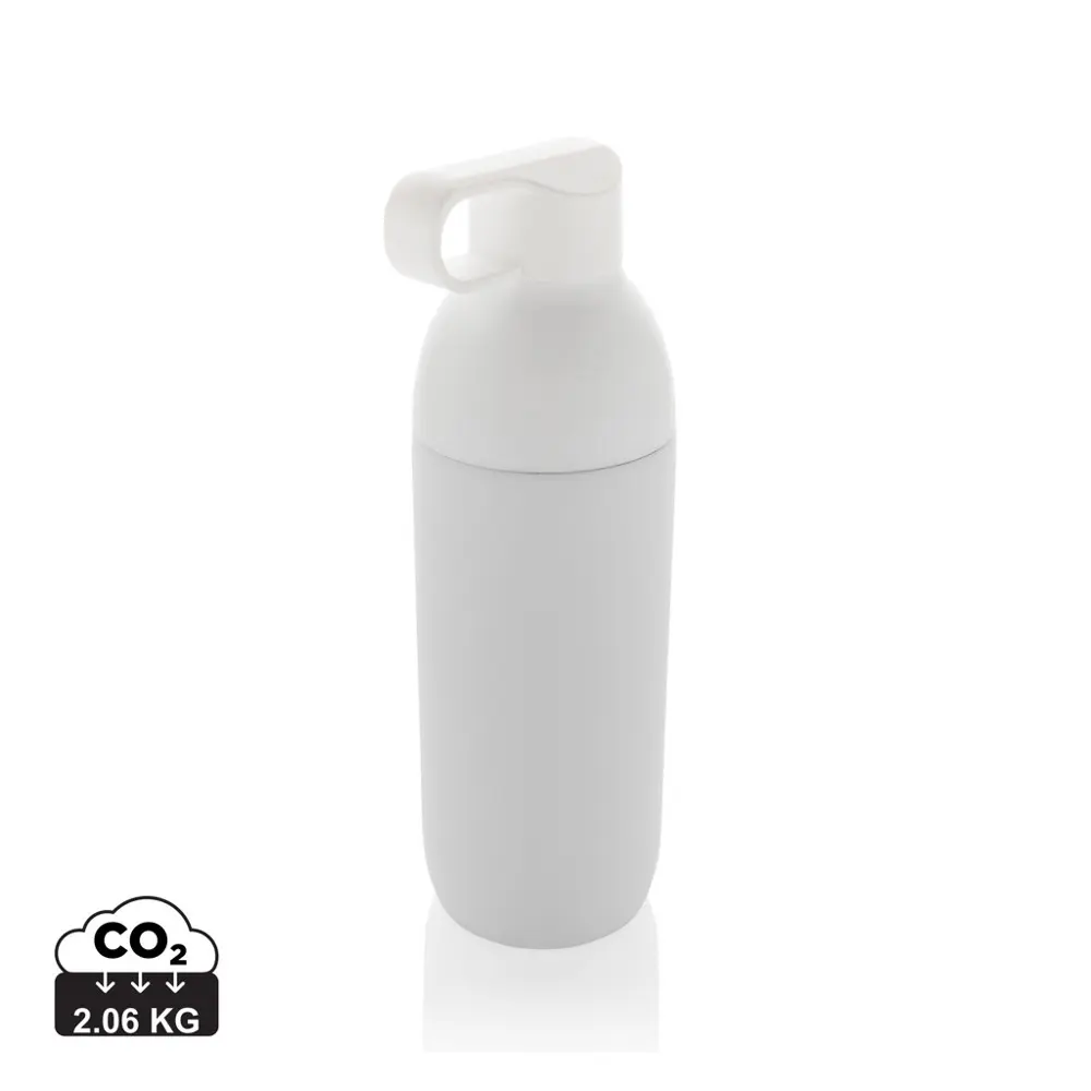 De Flow RCS gerecyclede roestvrijstalen vacuümfles is het ideale gepersonaliseerde relatiegeschenk voor uw marketingcampagnes en events. Met zijn dubbelwandige vacuümconstructie uit gerecycled roestvrij staal behoudt hij dranken tot 15 uur koel of 5 uur warm, zodat uw klanten langdurig genieten van hun favoriete drank. Het driedelige ontwerp maakt vullen en reinigen eenvoudig, terwijl de BPA-vrije samenstelling en geschiktheid voor dranken tot 75°C hygiëne en veiligheid garanderen. Met 75% gerecyclede inhoud en RCS-certificering toont u uw engagement voor duurzaamheid, perfect voor een groen bedrijfsimago. De 0,54 l capaciteit en diameter van 74 mm bieden praktisch gebruiksgemak. Inclusief FSC®-gecertificeerde kraftverpakking, ideaal voor logobedrukking en uitdeling aan uw relaties.