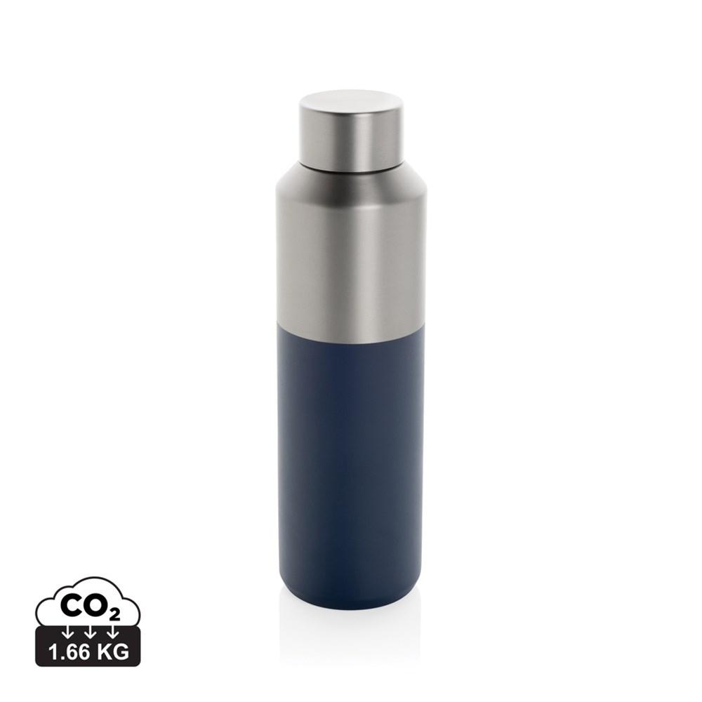 Deze 600 ml waterfles heeft een opvallende dubbelgekleurde buitenkant met een stijlvol half-half ontwerp. De dubbelwandige vacuümconstructie van gerecycled roestvrij staal houdt dranken tot 15 uur gekoeld of tot 5 uur warm. De waterfles past in de meeste standaard bekerhouders in de auto, wat hem perfect maakt voor onderweg. Gemaakt van RCS (Recycled Claim Standard) gecertificeerde gerecyclede materialen, wat zorgt voor een volledig gecertificeerde toeleveringsketen van de gerecyclede materialen. BPA-vrij. Inclusief FSC®-gecertificeerde kraft koker geschenkverpakking. Totaal gerecyclede inhoud: 95% op basis van het totale gewicht van het artikel.