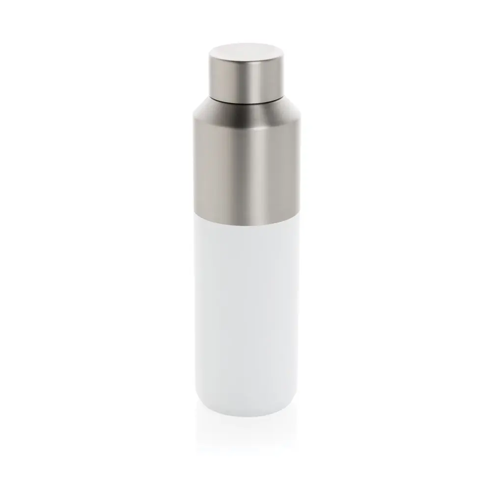 Ontdek deze stijlvolle 600 ml waterfles met een uniek half-half ontwerp. Gemaakt van gerecycled roestvrij staal met dubbelwandige vacuümconstructie, houdt deze fles uw dranken tot 15 uur koel en tot 5 uur warm. Perfect voor onderweg, want hij past eenvoudig in standaard bekerhouders in de auto. Als RCS-gecertificeerd product garandeert hij een traceerbare toeleveringsketen van gerecyclede materialen. BPA-vrij en met 95% gerecycled materiaal op basis van het totale gewicht, draagt hij bij aan uw duurzame bedrijfsimago.