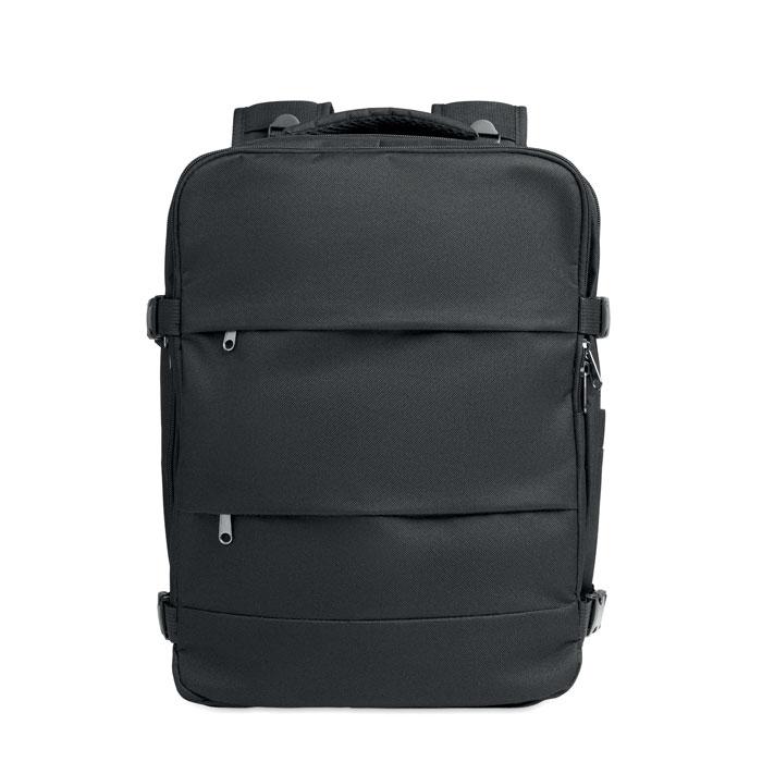Ontdek deze uitbreidbare handbagage rugzak, perfect als gepersonaliseerd relatiegeschenk voor jouw events of marketingacties. Gemaakt van stevig 600D RPET polyester met PU-achterzijde voor extra duurzaamheid en waterafstotendheid.