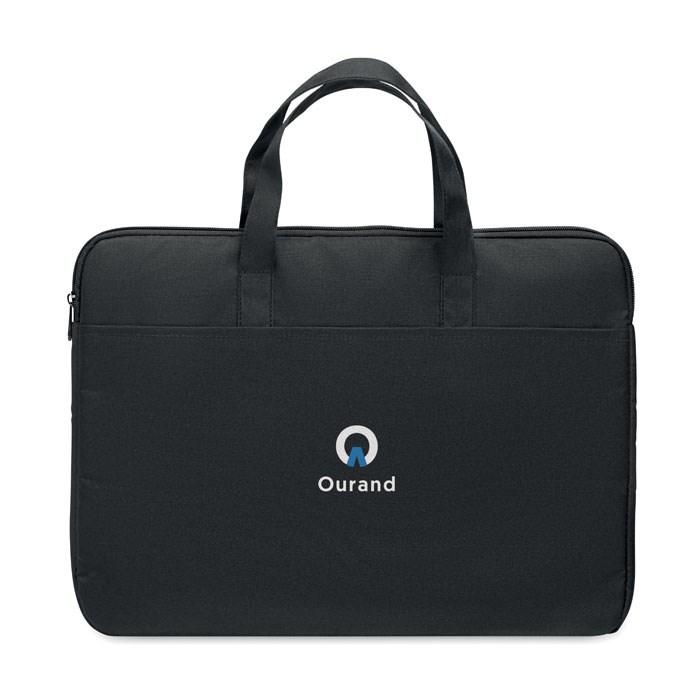 15'' laptoptas van 300D RPET polyester met handgrepen en een trolleyhouder aan de achterkant.