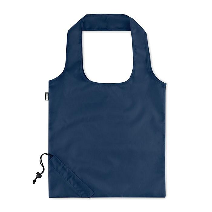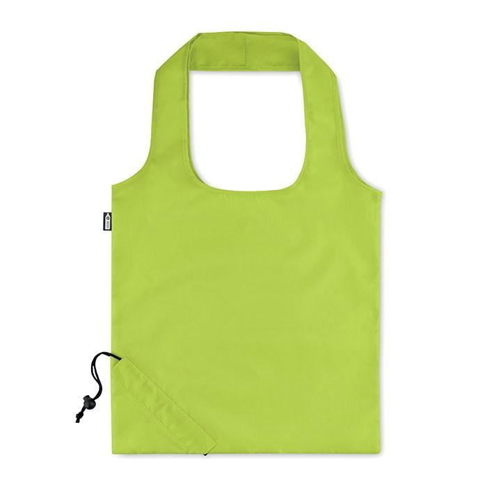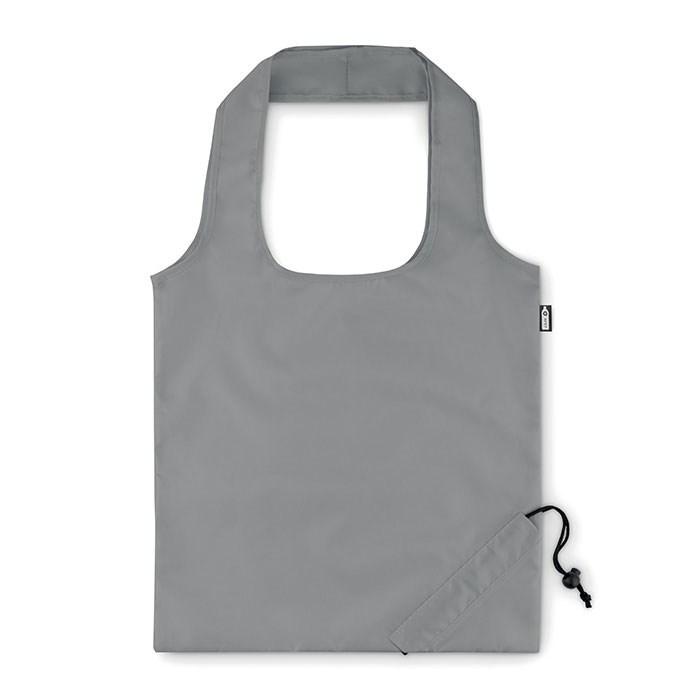 Opvouwbare boodschappentas van 190T RPET. Vouw de tas op in het hoekje van de tas en trek het koordje aan. Sublimatie bedrukking alleen geschikt op het witte item.