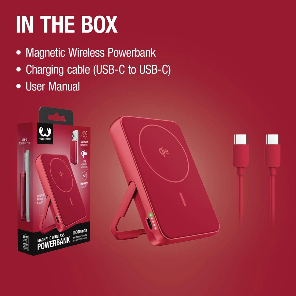 Hou je smartphone altijd opgeladen met deze Fresh ’n Rebel Magnetic Powerbank van 10.000 mAh. Je klikt hem magnetisch vast voor draadloos opladen tot Qi2 15W of je laadt razendsnel op via USB-C met 20W PD. Het slanke design met ingebouwde standaard en 4 batterij-indicatoren maakt hem ideaal voor onderweg.