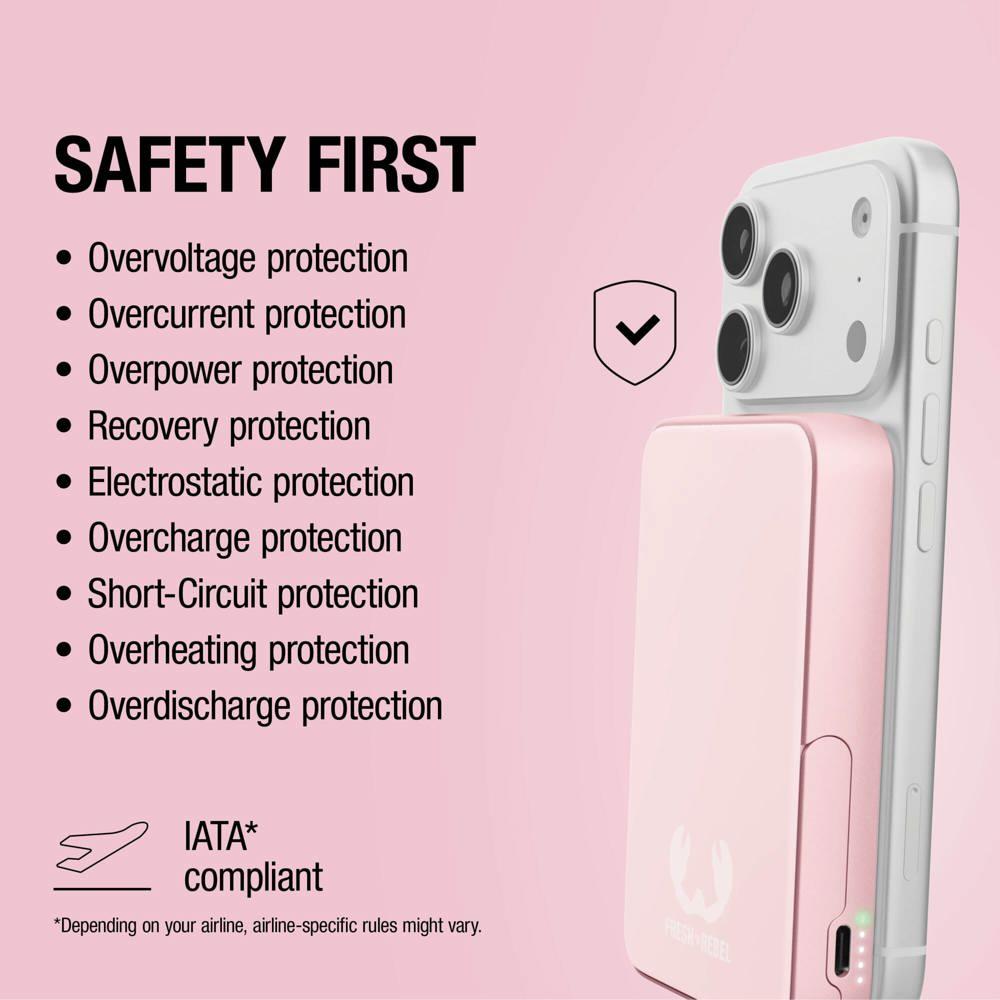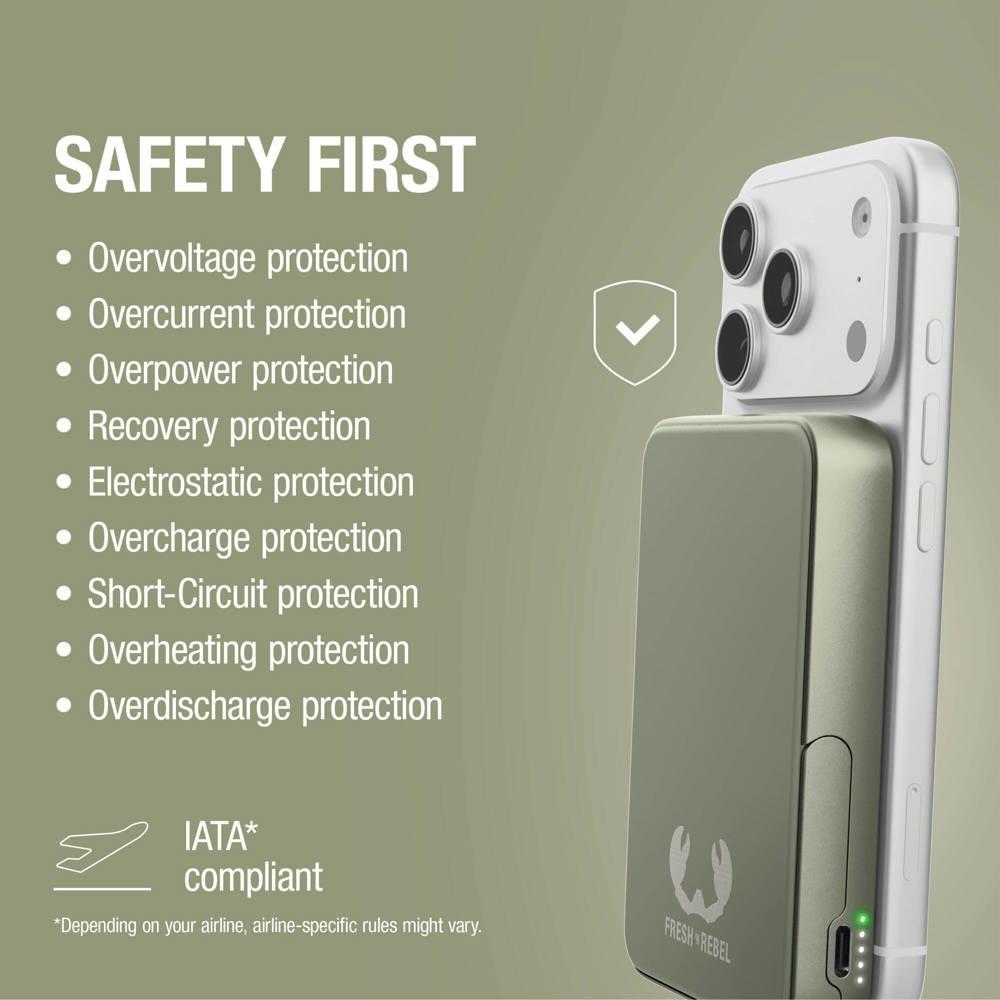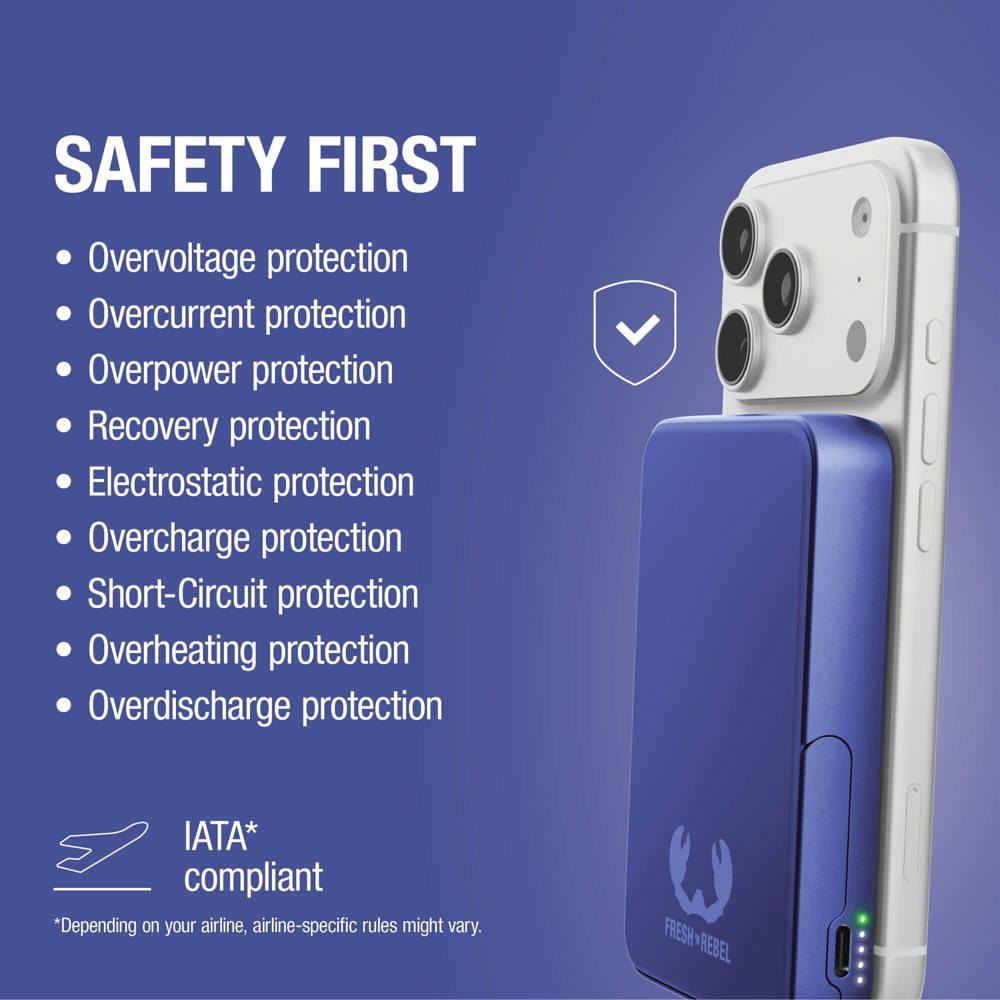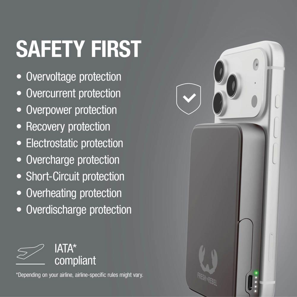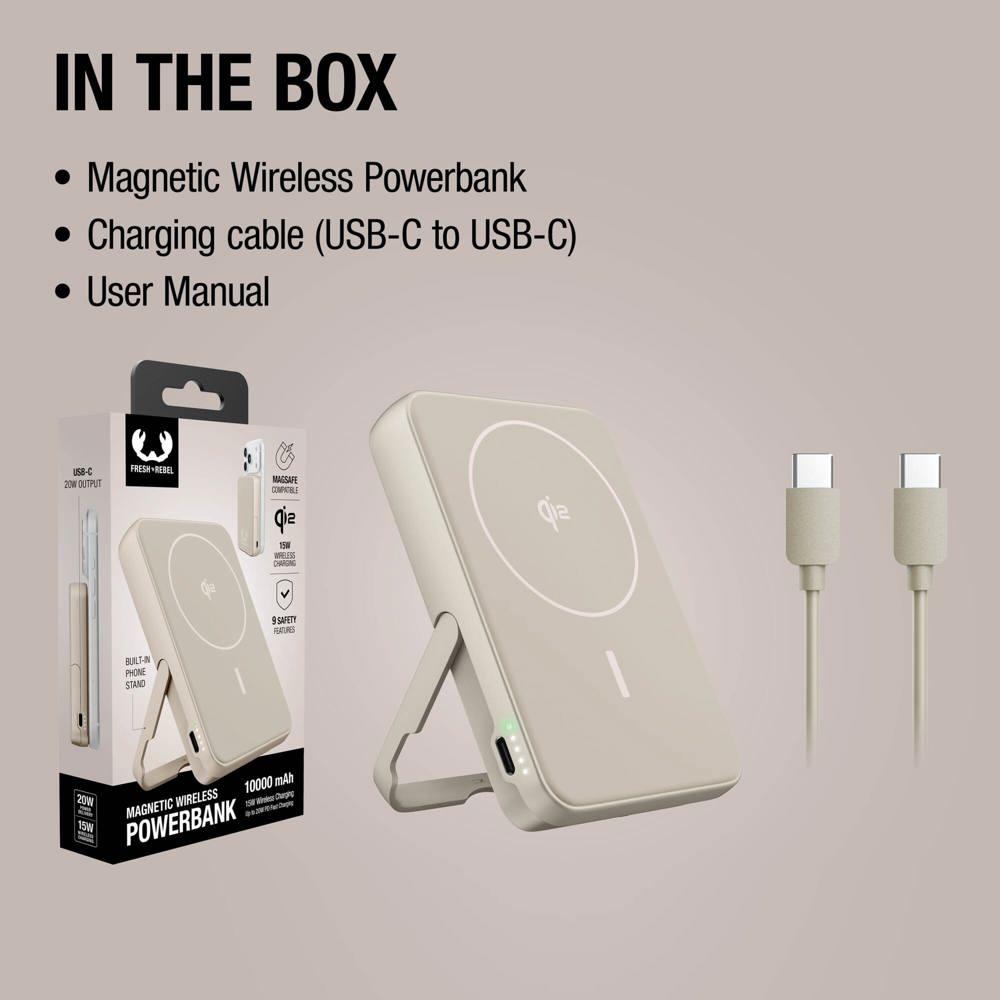 Hou je smartphone altijd opgeladen met de Fresh 'n Rebel Draadloze Powerbank 10000mAh, geschikt voor MagSafe. Je klikt hem magnetisch vast voor draadloos opladen tot Qi2 15W of je laadt razendsnel op via USB-C met 20W PD.
