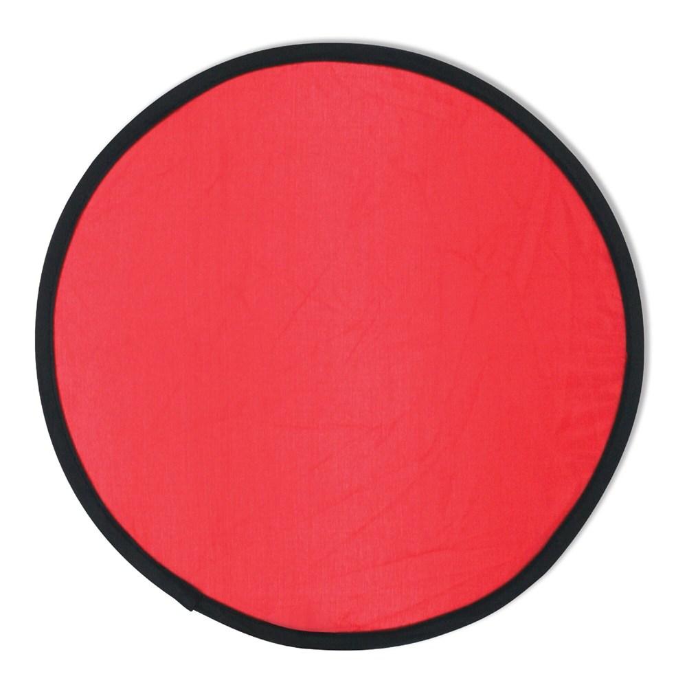 Nylon frisbee, opvouwbaar in hoesje. Bedrukking is standaard op de frisbee, maar kan ook op het hoesje (transferprint). Afmeting van het hoesje: 100x85mm.