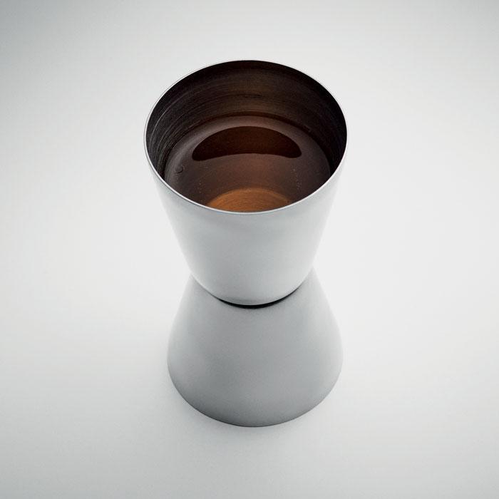 Dubbelzijdige roestvrijstalen barmaatje of maatbekertje. Capaciteit: 25 & 40 ml.