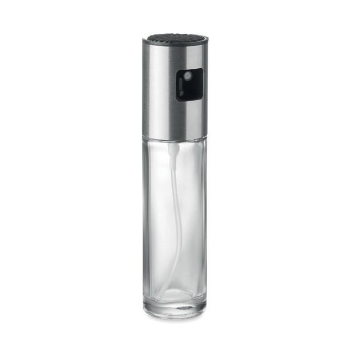 Glazen oliedispenser spray met roestvrijstalen deksel. Inhoud: 100 ml.
