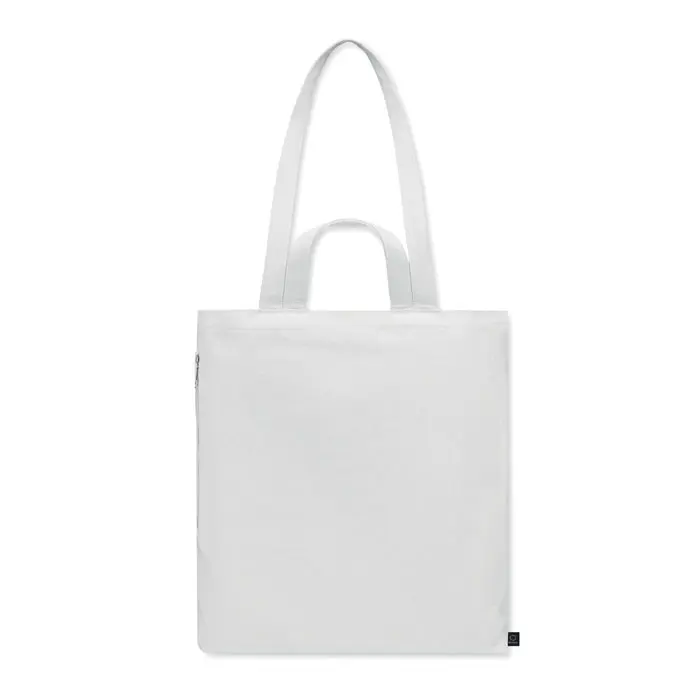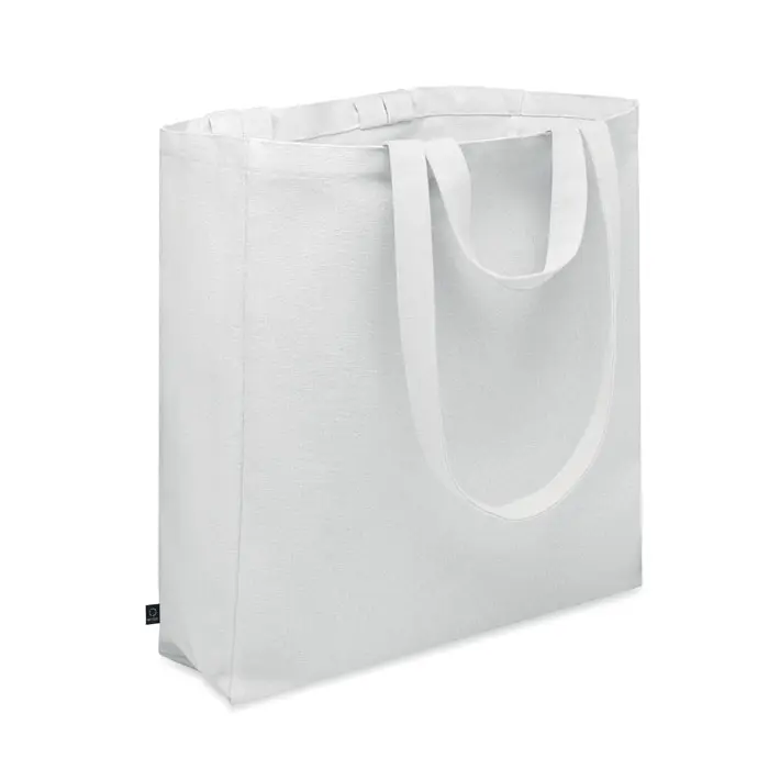 Ontdek onze gerecyclede boodschappentas, ideaal als duurzaam relatiegeschenk voor uw marketingcampagnes of events. Gemaakt van 70% gerecycled katoen en 30% gerecycled polyester (RPET), met een stevige grammage van 380 gr/m² en korte hengsels, biedt deze tas optimale functionaliteit voor boodschappen of stranduitjes.