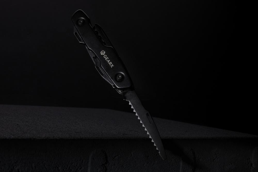 Rechte strakke lijnen gecombineerd met geweldige functionaliteit. Deze multifunctionele tool combineert het allemaal in één essential in zakformaat. De luxe aluminium behuizing is gevuld met hoogwaardige 420 roestvrijstalen tools allemaal in volledig zwart. De 13 functies omvatten: mes, zaag, platte schroevendraaier, blikopener, vijl, kleine kruiskopschroevendraaier, kruiskopschroevendraaier, kurkentrekker, draadgeleider, leerpons, stanleymes, flesopener en klein mes. Dit multifunctionele mes is klaar voor gebruik wanneer je het nodig hebt. Verpakt in luxe geschenkdoos.