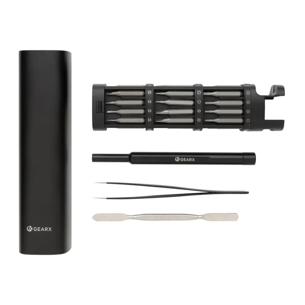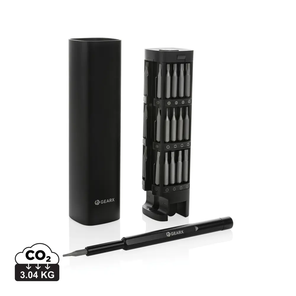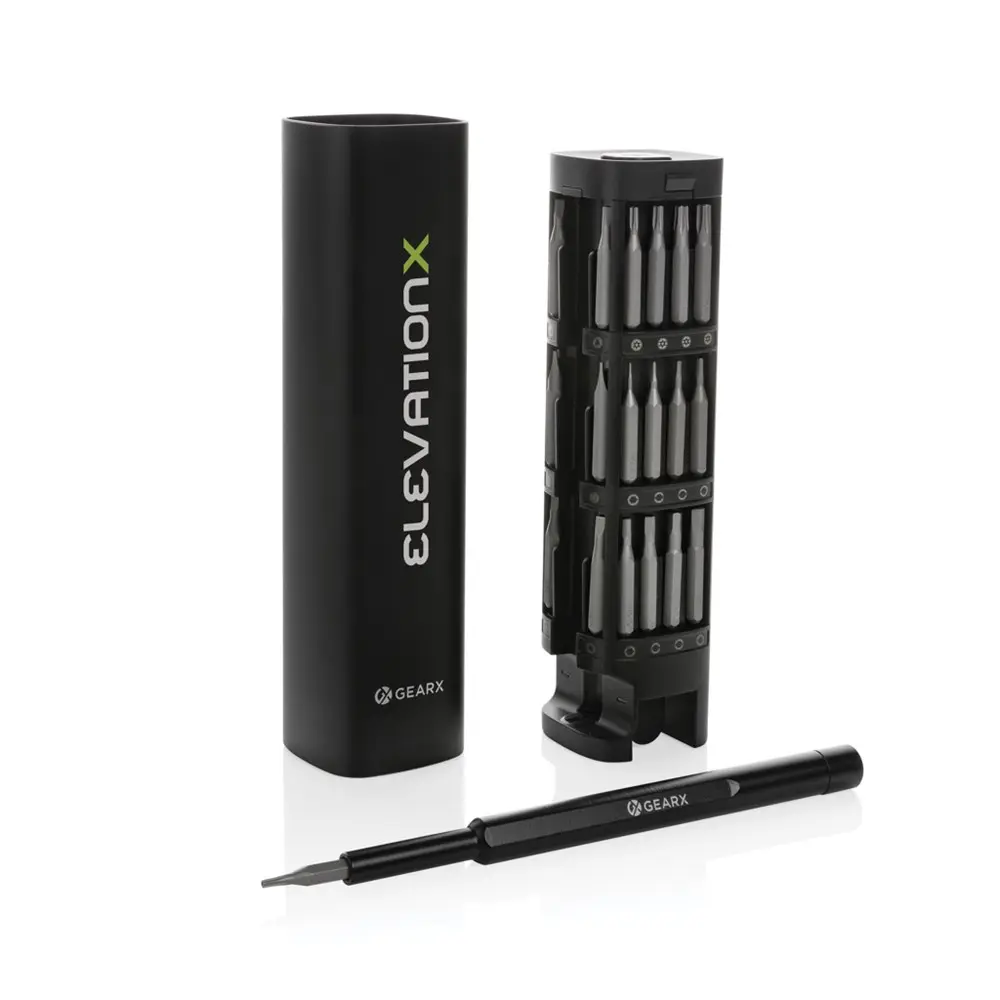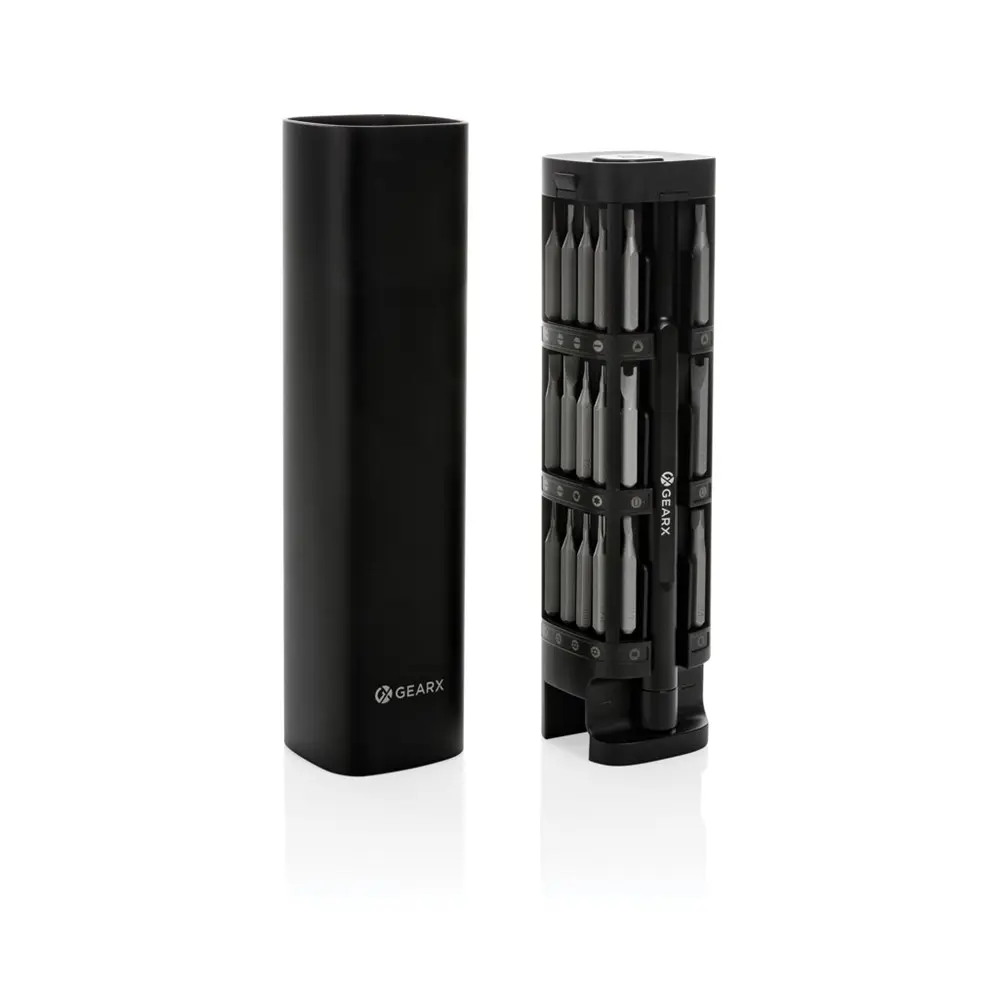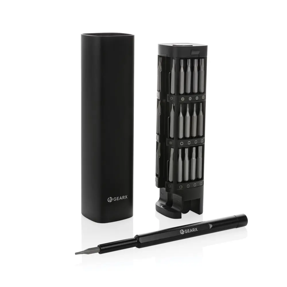 Ontdek de Gear X aluminium 46-delige schroevendraaierset, uw ideale gepersonaliseerde relatiegeschenk voor marketingcampagnes en events. Met precisiebits voor het repareren van smartphones, tablets en pc's verlengt u moeiteloos de levensduur van elektronica, terwijl u uw merkpromotie versterkt via logobedrukking.