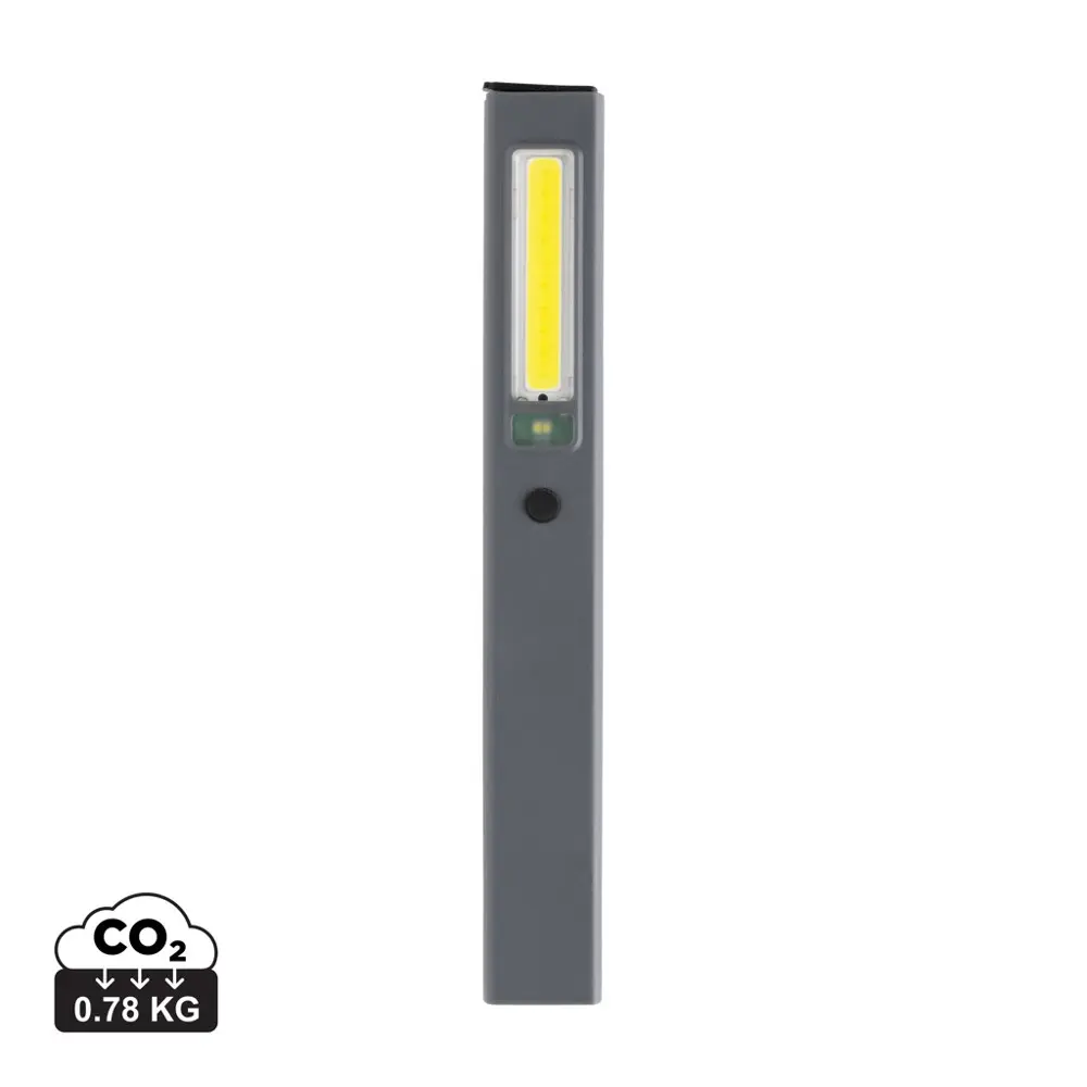 Ontdek onze zakformaat inspectielamp, vervaardigd uit RCS-gecertificeerd gerecycled ABS-plastic met een totale gerecyclede inhoud van 33%. Deze certificering waarborgt een transparante toeleveringsketen voor de gerecyclede materialen, wat bijdraagt aan uw duurzame bedrijfsimago. Ideaal als gepersonaliseerd relatiegeschenk met logobedrukking, perfect voor marketingprofessionals en event organizers die hun merk willen promoten bij klanten.