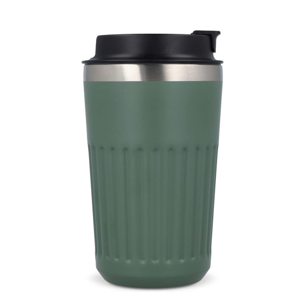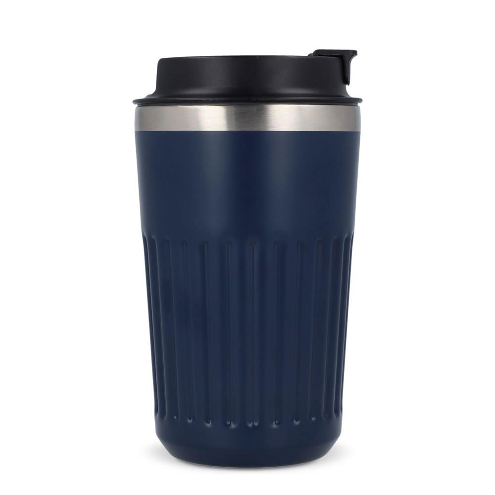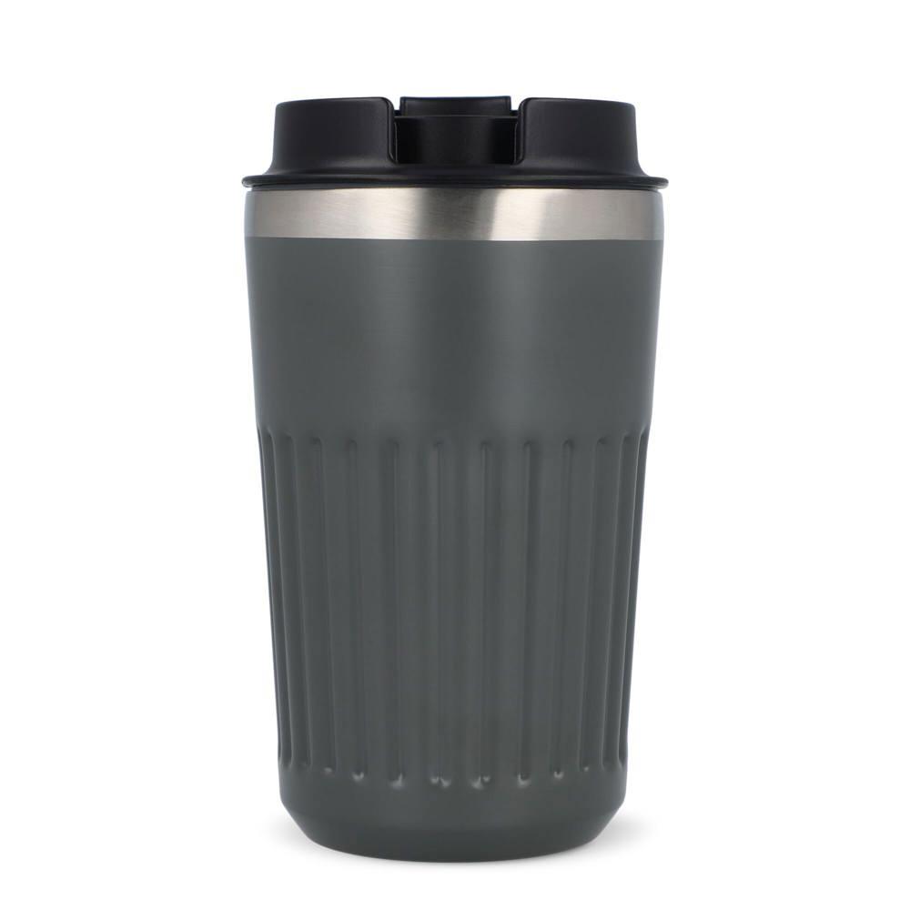 Ontdek deze duurzame gerecyclede koffiebeker van roestvrij staal met 400 ml inhoud, perfect voor onderweg. Het lekvrije deksel zorgt ervoor dat je geen lekkage hebt, ideaal tijdens events of dagelijks gebruik. Het moderne strepenpatroon geeft een stijlvolle look die opvalt.