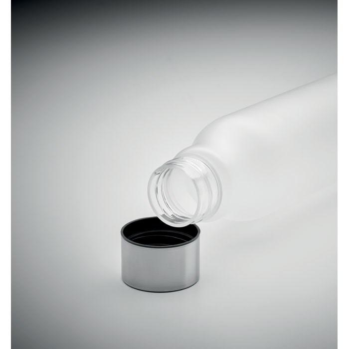Lekvrije RPET drinkfles met rubber finish en roestvrijstalen dop met RPET binnenwerk en siliconen ring. Inhoud 600ML. Niet geschikt voor koolzuurhoudende drankenLekvrij.