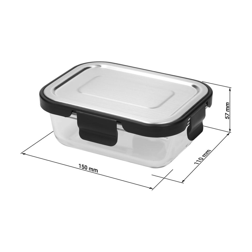 Ontdek de glasbox van hittebestendig borosilicaatglas met een stevige 4-voudige clip-sluiting en lekvrije deksel uit roestvrij staal, PP en siliconen. Met 370 ml inhoud is hij ideaal voor maaltijdbereiding, voorraadopslag of restjes bewaren.