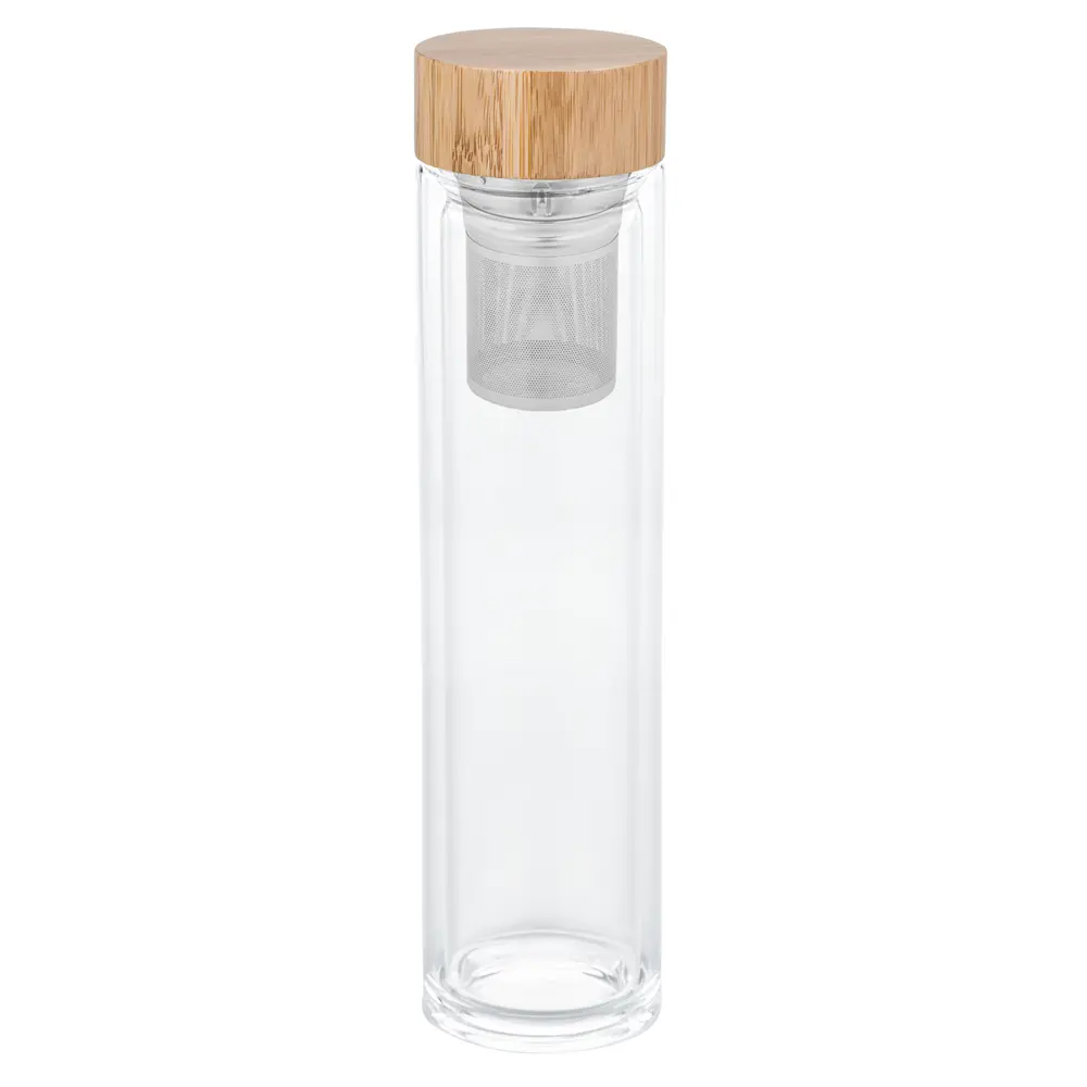 Bent u op zoek naar een stijlvol en functioneel relatiegeschenk dat uw merkpromotie versterkt? Deze dubbelwandige glazen fles met theezeef biedt een unieke manier om thee te presenteren als premium drank. Ideaal voor marketingprofessionals en eventorganisatoren die producten willen personaliseren met logobedrukking voor hun klanten of bezoekers.
