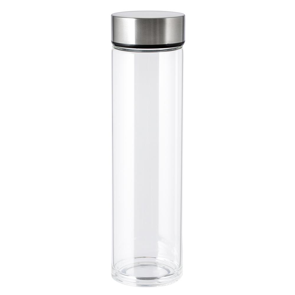 Onze drinkfles is gemaakt van hoogwaardig borosilicaatglas en is nog steeds extreem licht. Glas is bijzonder geschikt voor dranken, omdat glas reukloos en smaakloos is en geen interactie heeft met andere stoffen. De deksel is gemaakt van mooi roestvrij staal waarop een gegraveerd logo bijzonder goed uitkomt. De zachte beschermhoes heeft een praktische lus, zodat u de fles gemakkelijk overal mee naartoe kunt nemen. De fles is niet geschikt voor koolzuurhoudende dranken.