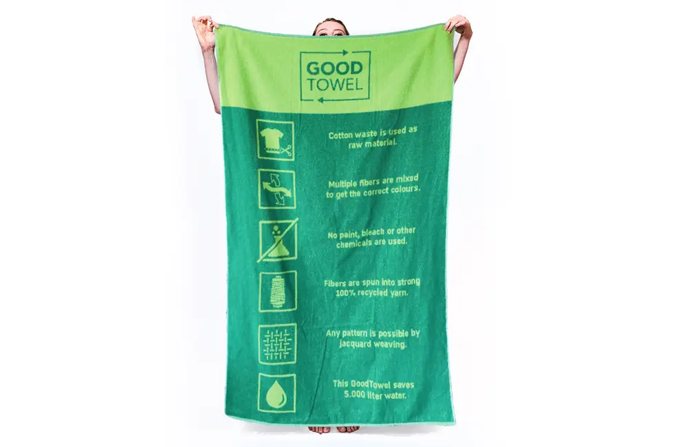De GoodTowel Stock is een hoogwaardige badstof handdoek van 100% gerecycled katoen, ideaal als gepersonaliseerd relatiegeschenk voor uw marketing- of eventcampagnes. Gemaakt uit snijverlies van textielproducties, wordt nieuw garen gesponnen zonder bleekmiddelen, verf of chemicaliën, dankzij jacquardweven. Dit natuurlijke proces bespaart tot 5.000 liter water per handdoek vergeleken met conventionele productie.