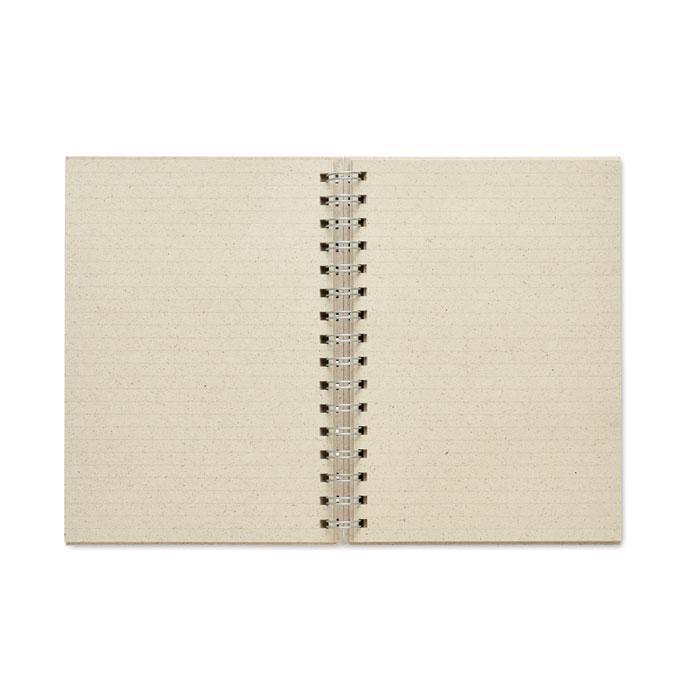A5 notitieboek met 80 vellen gelinieerd graspapier en kartonnen kaft. Ideaal voor al je notities tijdens vergaderingen op kantoor of op school. Graspapier is een perfecte bewuste promotionele give-away. Het productieproces is van begin tot eind duurzaam en milieuvriendelijker dan traditioneel papier op houtbasis. Gemaakt in de EU.