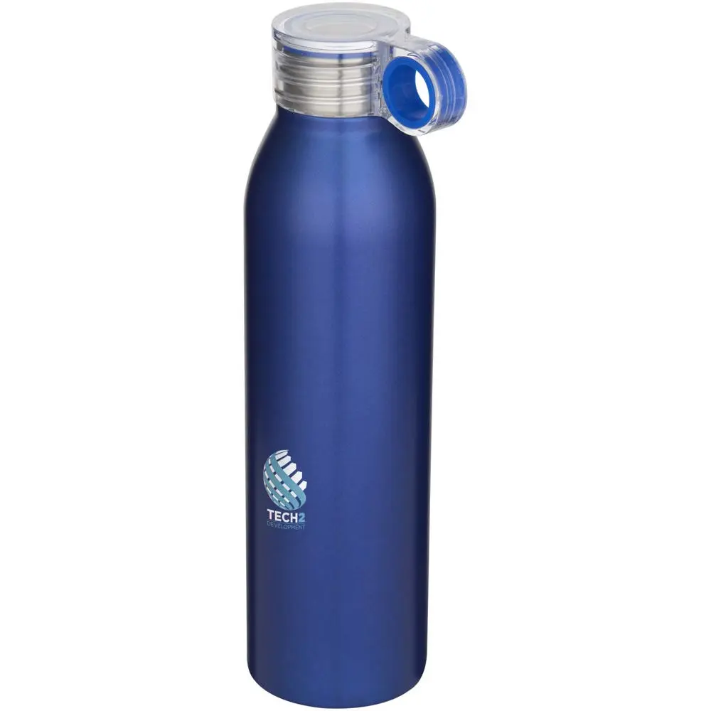 Ontdek de Grom waterfles van 650 ml, ideaal als gepersonaliseerd relatiegeschenk voor uw bedrijf. Gemaakt van 90% RCS-gecertificeerd gerecycled roestvrij staal met 10% PS-kunststof, draagt deze duurzame fles bij aan uw groene imago en voldoet aan RCS-normen. De transparante schroefdop zorgt voor morsvrij gebruik, terwijl de geïntegreerde lus het eenvoudig maakt om mee te nemen tijdens events of dagelijks gebruik.