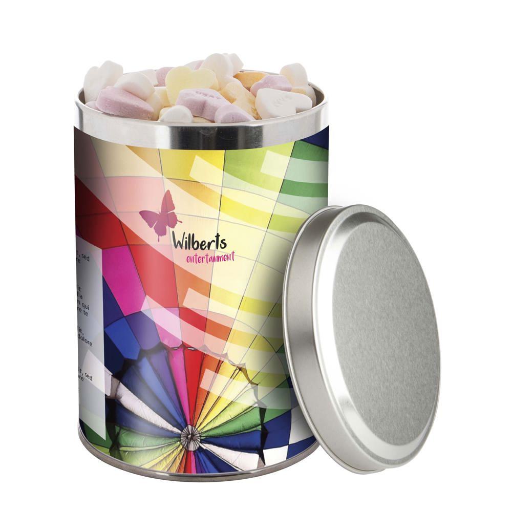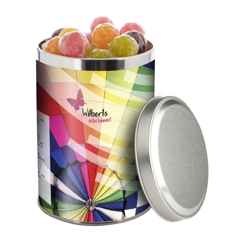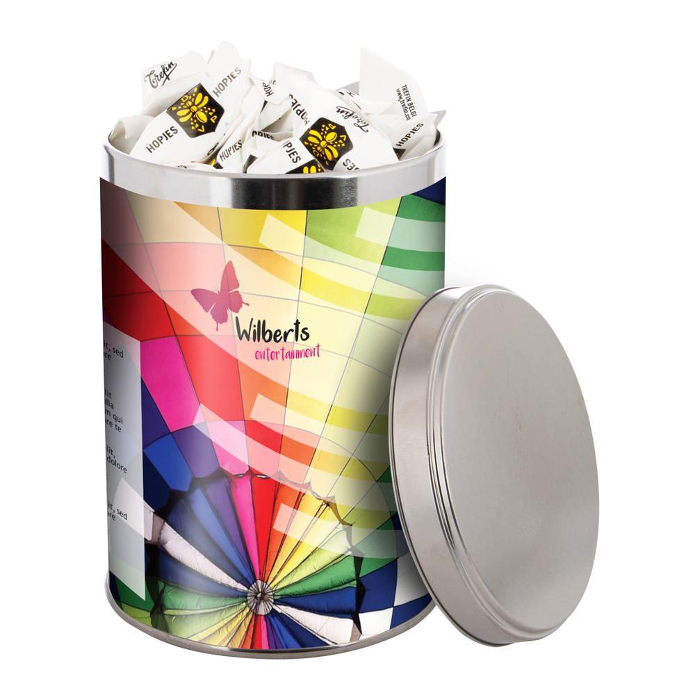 Groot blik met snoep en full colour bedrukking
