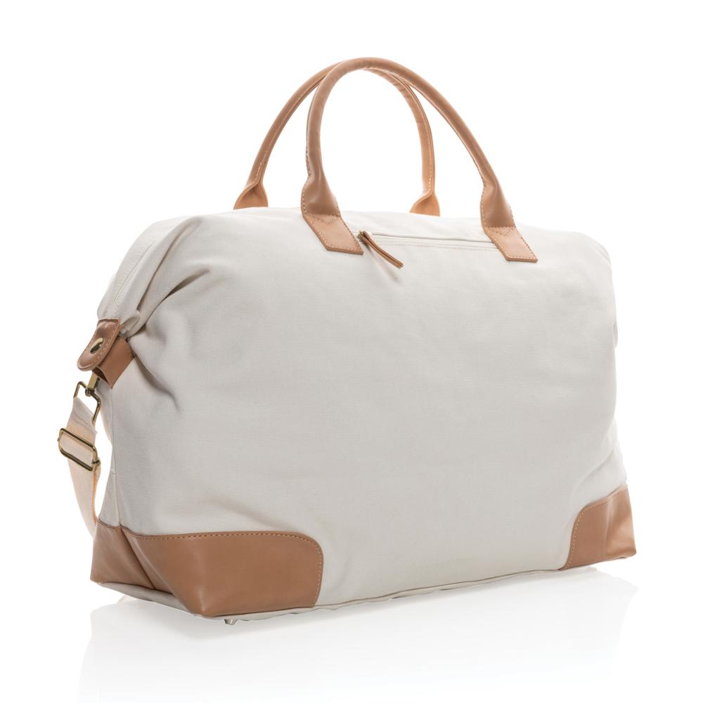 Plan je perfecte weekendje weg met deze grote 16oz. weekendtas van gerecycled canvas. De tas heeft één groot ruim compartiment met voorvak en PU-handvatten. De onderkant is voorzien van vier messing noppen om je tas schoon te houden wanneer deze op de grond wordt geplaatst. 2% van de opbrengst van elk verkocht Impact-product wordt gedoneerd aan Water.org. Samenstelling 60% gerecycled katoen en 40% gerecycled polyester. Voering van 150D gerecycled polyester.