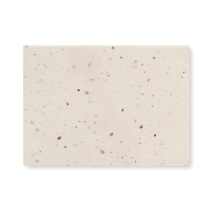Groeipapier met zachte kaft en memoblok van 50 sticky notes gemaakt van graspapier. Net als de traditionele gele memoblokken kun je je aantekeningen op het papier schrijven en ergens plakken, zodat je ze niet vergeet. Als je alle 50 vellen papier hebt gebruikt, kun je de cover van het memoblok in de aarde planten. Een selectie van wilde veldbloemen zal groeien en dit item een nieuw doel geven. Een echt groen en duurzaam kantoor item. Gemaakt in de EU.