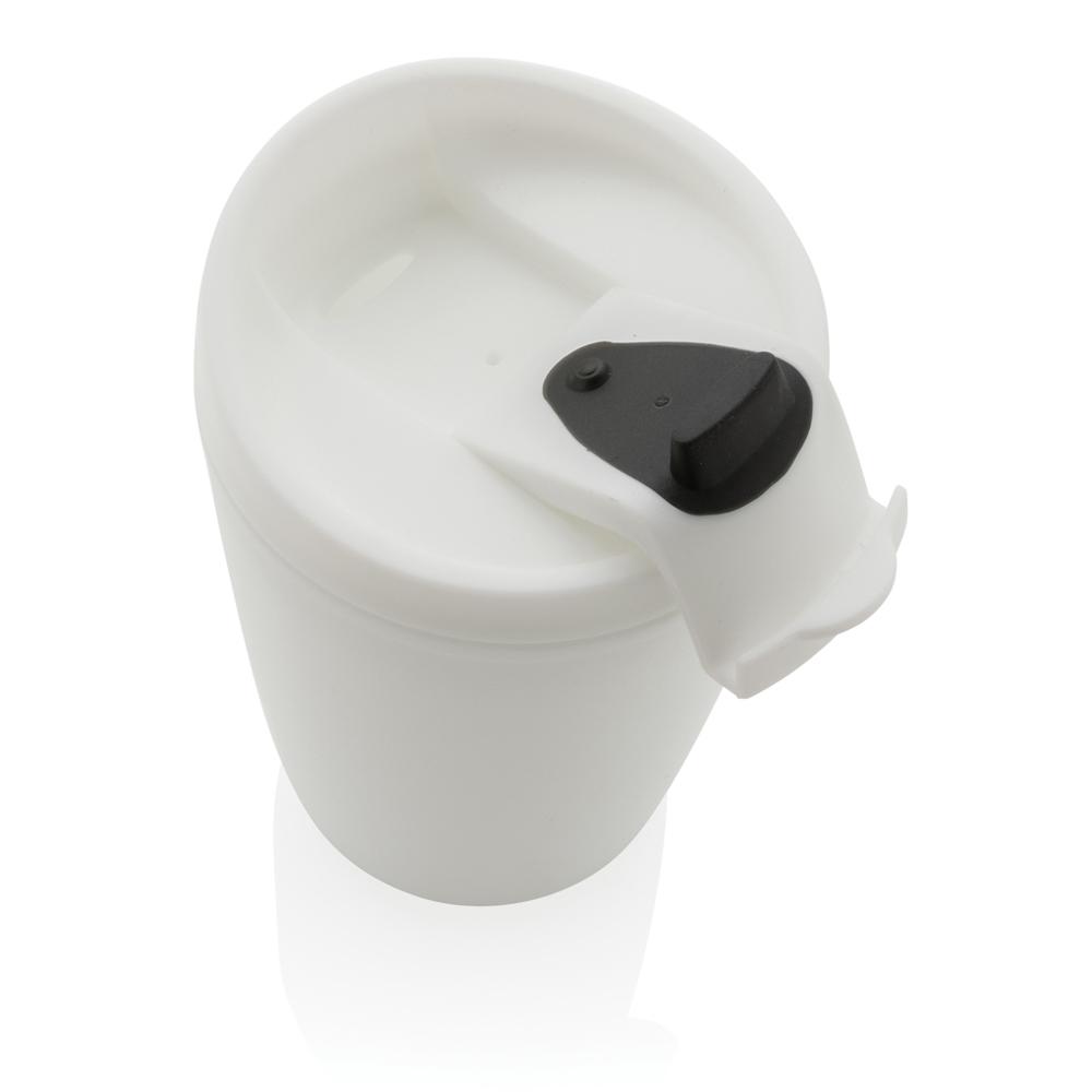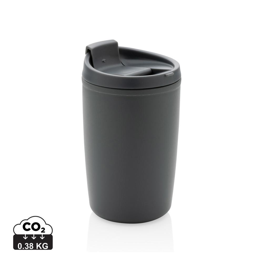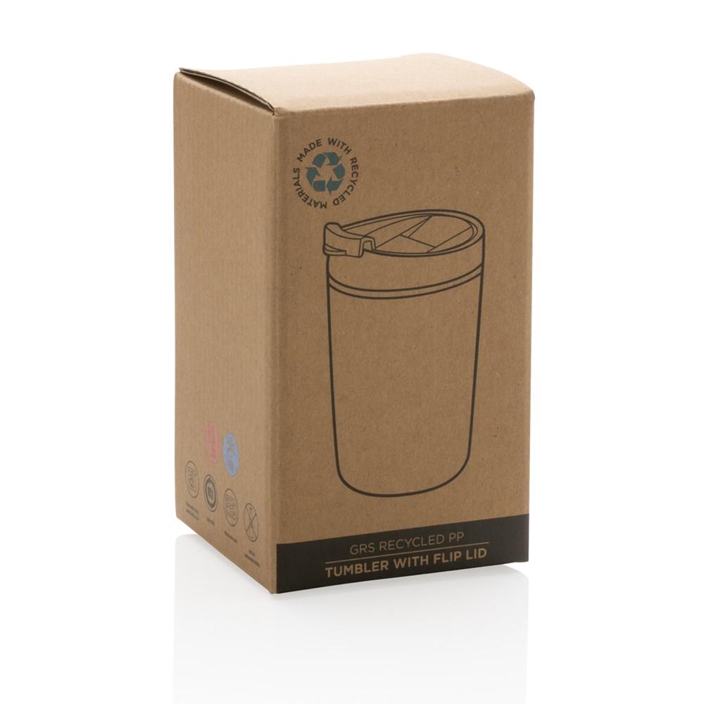 Deze beker is gemaakt van GRS-gecertificeerd gerecycled PP. GRS-certificering zorgt voor een volledig gecertificeerde toeleveringsketen van de gerecyclede materialen. De beker is voorzien van een klapdeksel zodat je er gemakkelijk onderweg van kunt nippen. Totaal gerecycled materiaal: 35% op basis van het totale gewicht van het item. Handwas wordt aanbevolen. BPA-vrij. Capaciteit 300ml. Een FSC®-gecertificeerde kraftverpakking is inbegrepen.