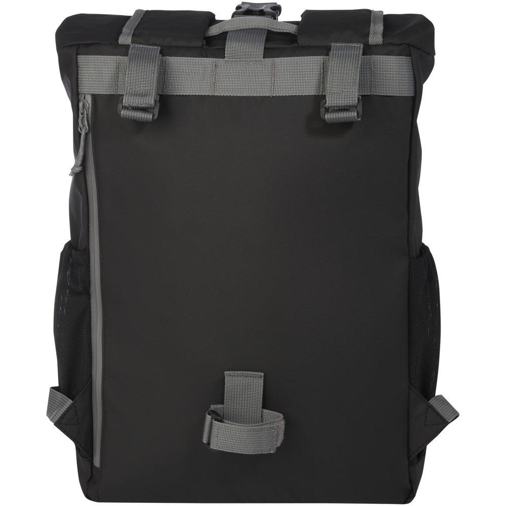 Waterbestendige fietstas met opgerolde bovenkant gemaakt van GRS-gecertificeerde gerecyclede materialen. De tas heeft een gewatteerd 15'' laptopcompartiment, meerdere opbergvakken, verstelbare klittenbandsluiting voor eenvoudige montage op verschillende fietsen en reflecterende biezen voor zichtbaarheid. De gerecyclede GRS-materialen omvatten de hoofdstof, voering, banden en ritsen. Capaciteit: 20 liter. PVC-vrij.