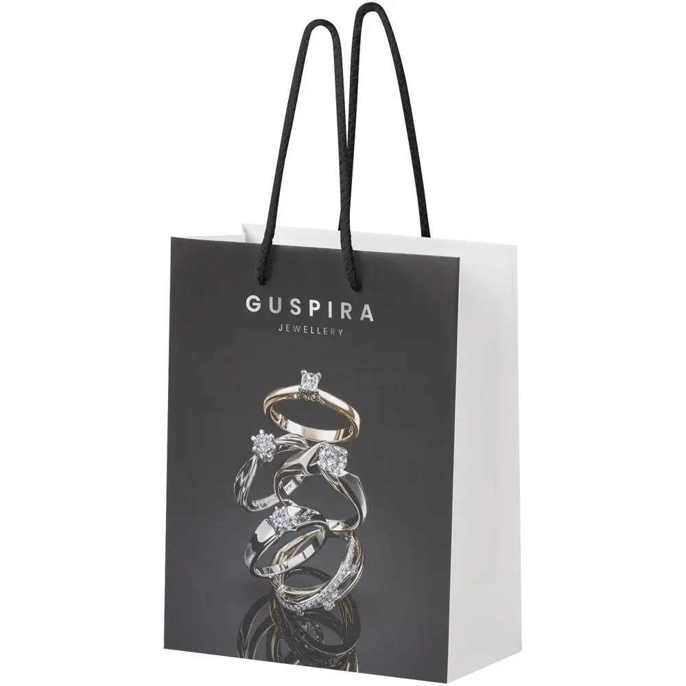 De aanpasbare voor- en achterkant maken logobedrukking eenvoudig, zodat u uw merk prominent kunt profileren. Gemaakt van gelamineerd papier voor stevigheid en herbruikbaarheid, fungeert deze tas als duurzame marketingtool die uw bedrijf op een professionele manier promoot.