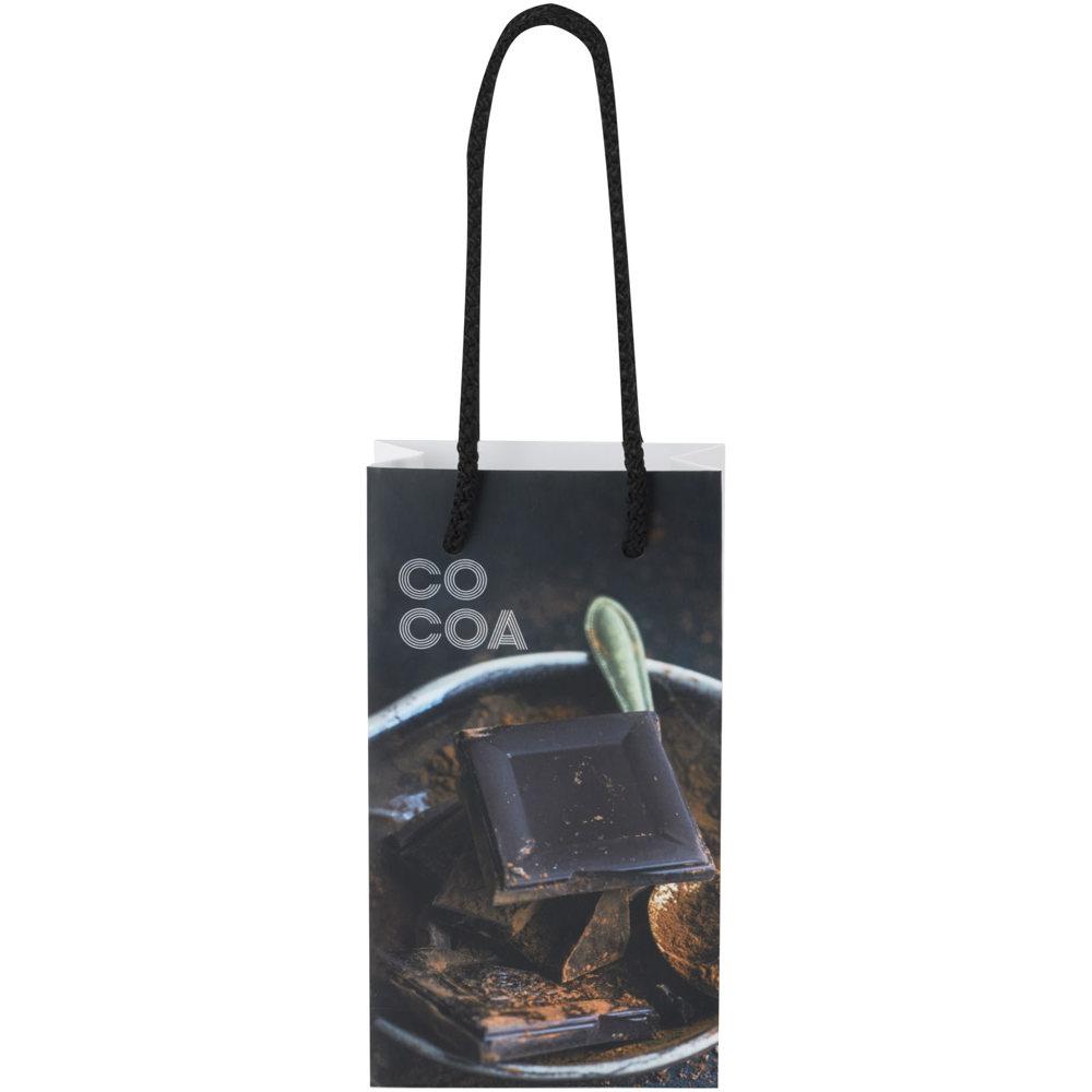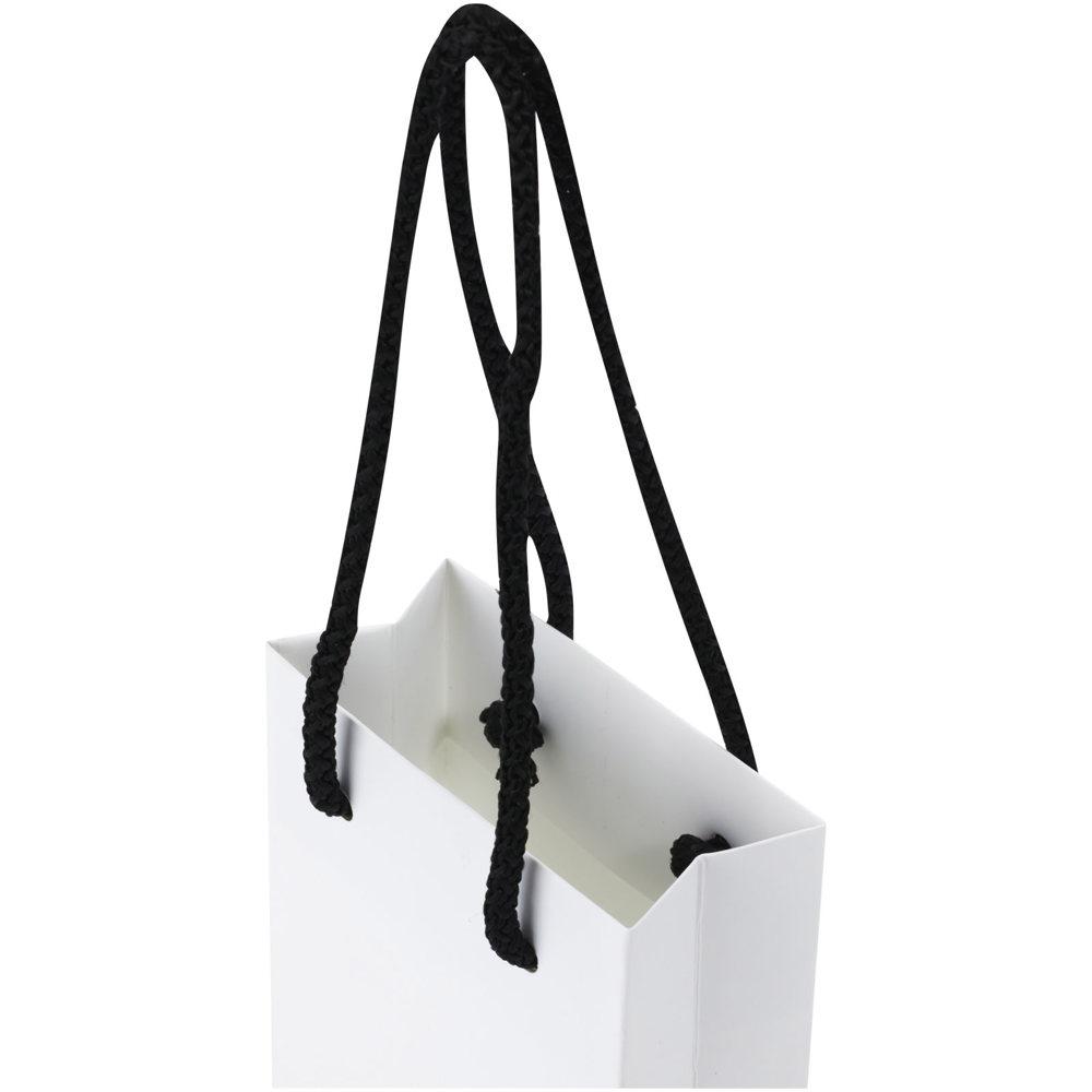 Kleine handgemaakte matte integra papieren tas (9,5 x 4 x 17 cm) van 170 g/m2 met PP woven handgrepen. De aanpasbare voor- en achterkant bieden voldoende ruimte voor het afdrukken van een logo of een ander ontwerp, waardoor het een uitstekende zakelijke marketingtool is. Gemaakt in Europa en 100% recyclebaar.