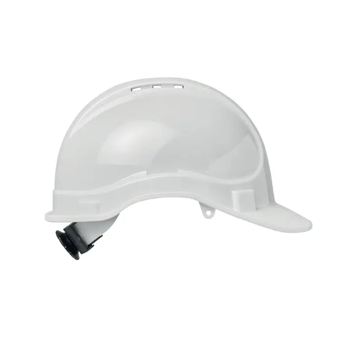 Ontdek onze robuuste veiligheidshelm uit ABS, ideaal voor uw bouwteams of magazijnmedewerkers. Deze helm biedt optimale bescherming en comfort dankzij ventilatieopeningen die voor een goede luchtcirculatie zorgen. De afneembare kinband en zweetband verhogen het draagcomfort, terwijl de verstelbare hoofdband (51-63 cm) een perfecte pasvorm garandeert voor elk hoofd. Voldoet aan de EN397-norm voor gecertificeerde veiligheid.