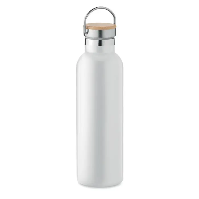 Ontdek de ideale oplossing voor uw merkpromotie met deze hoogwaardige dubbelwandige thermosfles van 750 ml. Gemaakt van roestvrij staal met vacuümisolatie, biedt deze fles langdurige temperatuurbehoud voor warme en koude dranken. Het bamboe deksel en de praktische draagring zorgen voor gebruiksgemak en een natuurlijke uitstraling.