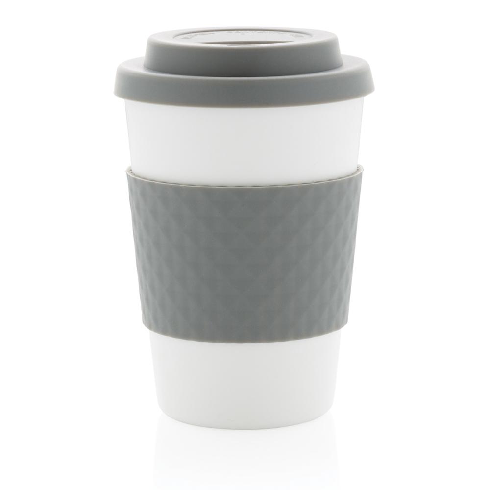 Stop met het gebruik van wergwerpartikelen! Breng je eigen beker mee en draag bij aan een wereld zonder wegwerpartikelen. Deze lichtgewicht en duurzame bekers zijn perfect voor je koffie onderweg. 100 graden Celsius voedselveilig goedgekeurd. Met siliconen deksel en sleeve. Geschikt voor de vaatwasser en magnetron. Past gemakkelijk onder de meeste koffiemachines. Inhoud: 270 ml.