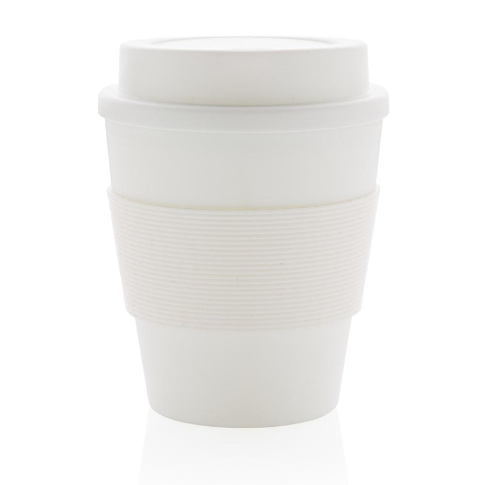 Breng je merk duurzaam onder de aandacht met deze herbruikbare koffiebeker met schroefdop van 350 ml. Je klanten nemen hem overal mee naartoe dankzij het lichte gewicht, de lekvrije schroefdeksel en de gripvaste siliconen sleeve. Gemaakt van 100% recyclebaar PP-materiaal, voedselveilig tot 100°C, houdt hij je drankje 2 uur warm en 4 uur koud.