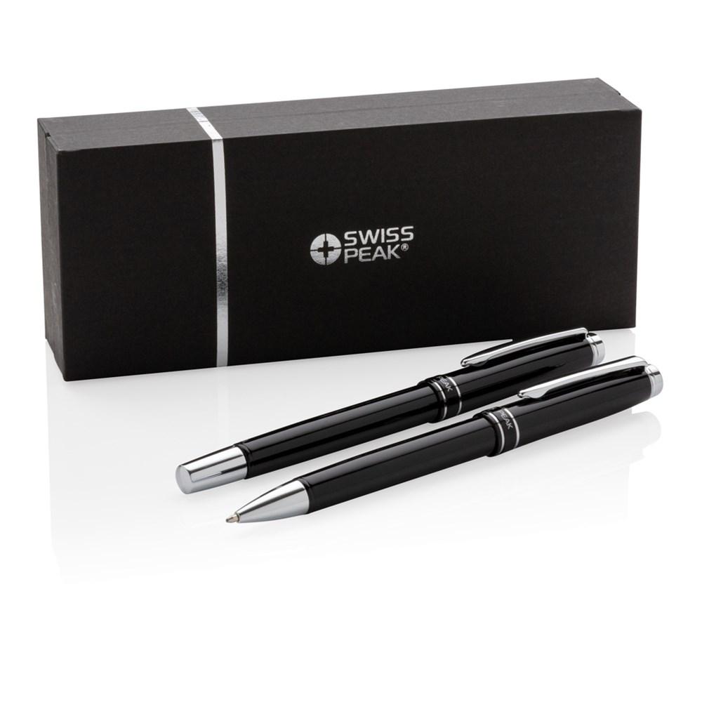 De Swiss Peak Heritage collectie wordt gekenmerkt door moderne elegantie. Luxe metalen balpen en rollerball set verpakt in Swiss Peak giftbox. Inclusief Duitse ca.1200m schrijflengte Dokumental® blauwe inkt vulling met TC-ball voor ultra vloeiend schrijfplezier.