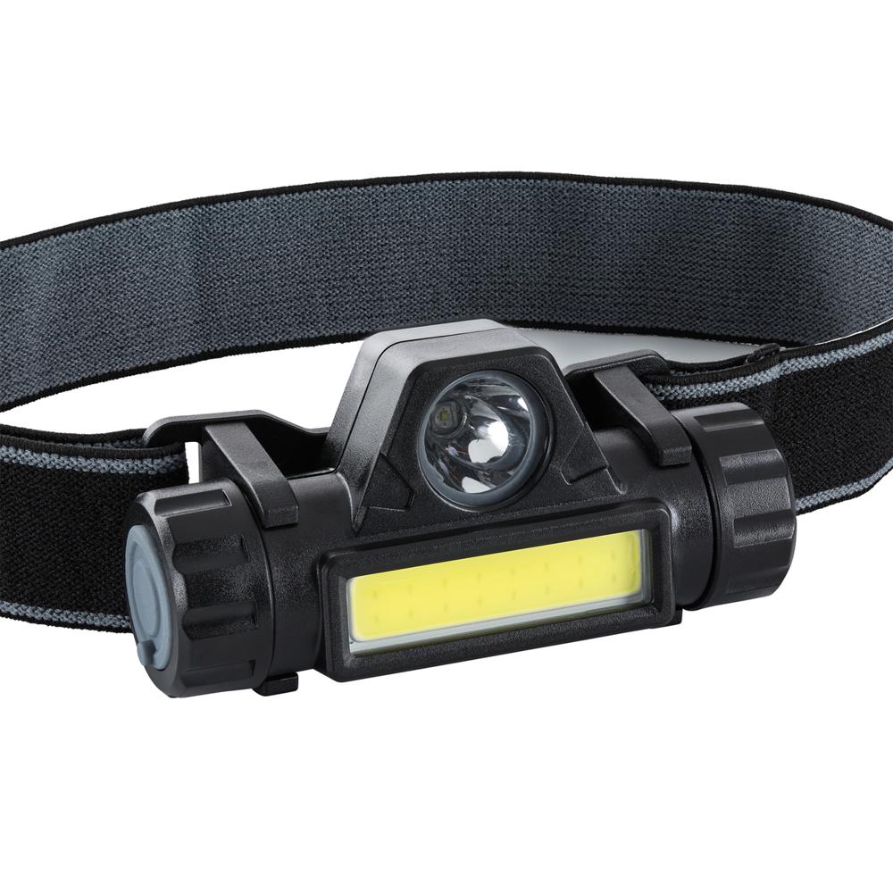 Ontdek deze praktische hoofdlamp, perfect als gepersonaliseerd relatiegeschenk voor jouw events of promotiecampagnes. Je ontvangt een model met verstelbare, duurzame rubberen band die comfortabel zit, zelfs bij langdurig gebruik. De krachtige led van 100 lumen en cob-led van 150 lumen zorgen voor helder, breed licht, ideaal om handen vrij te houden tijdens buitenactiviteiten of workshops.