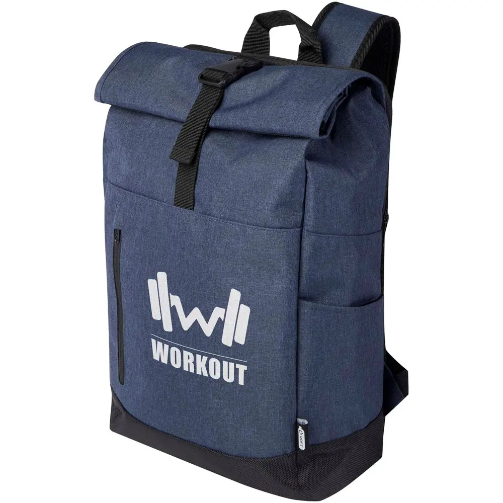 Ontdek de Hoss 15,6 inch oprolbare laptoprugzak van 12L, een ideaal relatiegeschenk voor uw marketingcampagnes en events. Deze rugzak biedt optimale bescherming voor laptops tot 15,6 inch en is vervaardigd uit gerecycled polyester, GRS-gecertificeerd voor naleving van hoge duurzaamheidsnormen. Met afmetingen van 25 x 43 x 14 cm past hij perfect bij uw professionele behoeften.