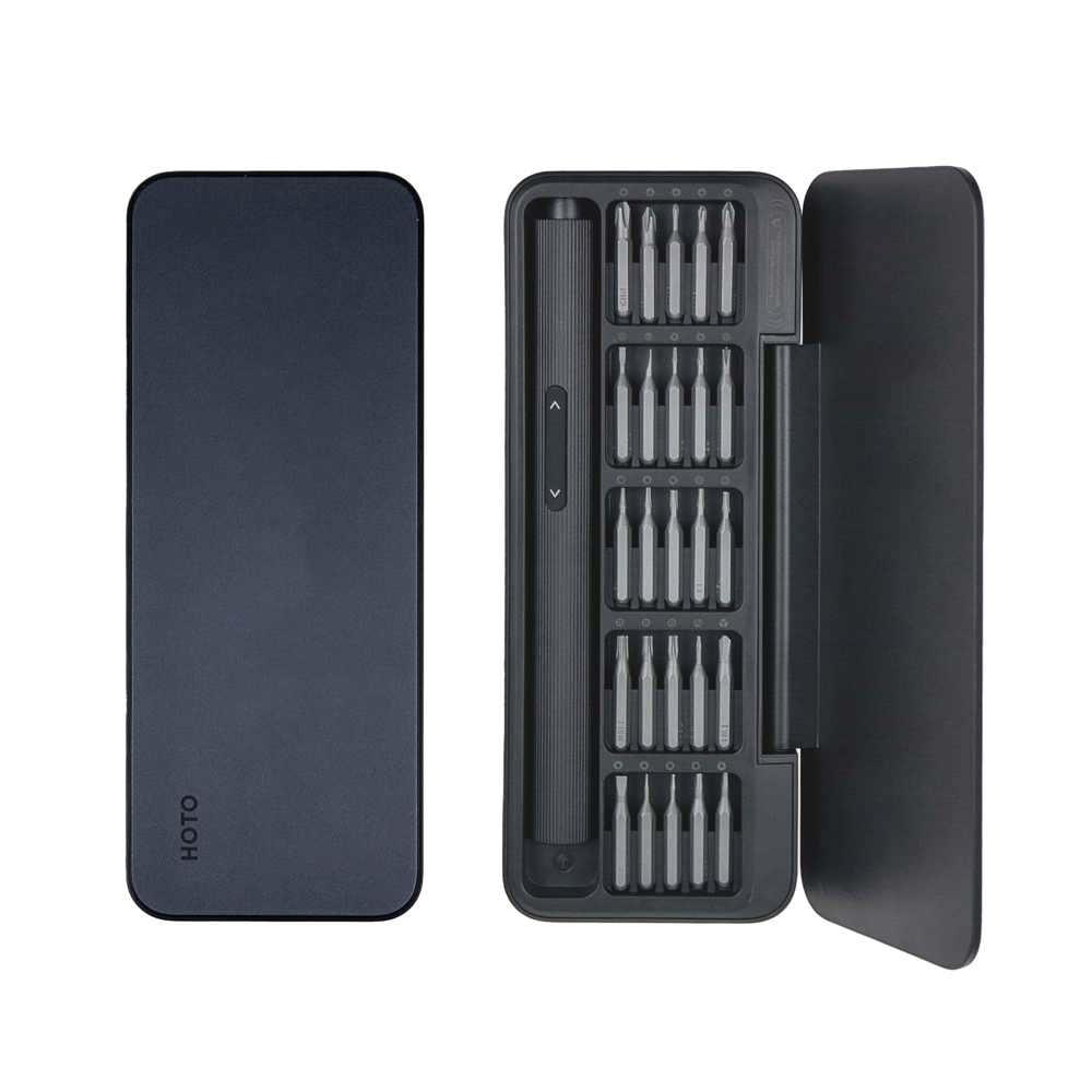 Deze precisieschroevendraaierset heeft 25 S2-stalen precisiebits die geschikt zijn voor een camera, klok, controller of andere apparaten. U kunt aan het werk met kleinere onderdelen in uw elektronica tot het repareren van grotere gadgets met één snelle wissel van de schroevendraaierkop. Intuïtieve voor-en achterknoppen kunnen met één druk worden ingeschakeld (alleen voor automatisch schroeven). De magnetische schroevendraaier en magnetische opbergdoos helpen uw set veilig en georganiseerd te houden en de doos heeft ook een handige ingebouwde USB-C-oplaadpoort.