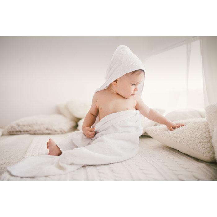 Katoenen babyhanddoek met kap. 300 gr/m².