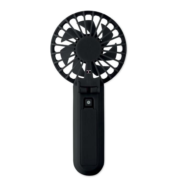 Ontdek deze handige draagbare vouwventilator, perfect als gepersonaliseerd relatiegeschenk voor jouw events of promoties. Gemaakt van stevig ABS-materiaal met 3 snelheidsstanden, gebruik je hem eenvoudig als handventilator onderweg of als bureauventilator op je tafel. De vervangbare en oplaadbare 14500 Lithium-batterij van 500mAh zorgt voor langdurig gebruik zonder zorgen.